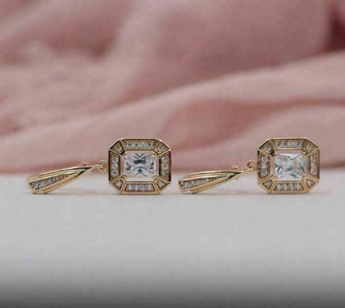 4.20Ct Emerald Cut VVS1/D Diamond Drop & Dangle Earrings 14K Yellow Gold Finish