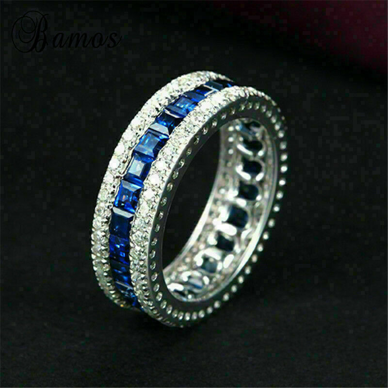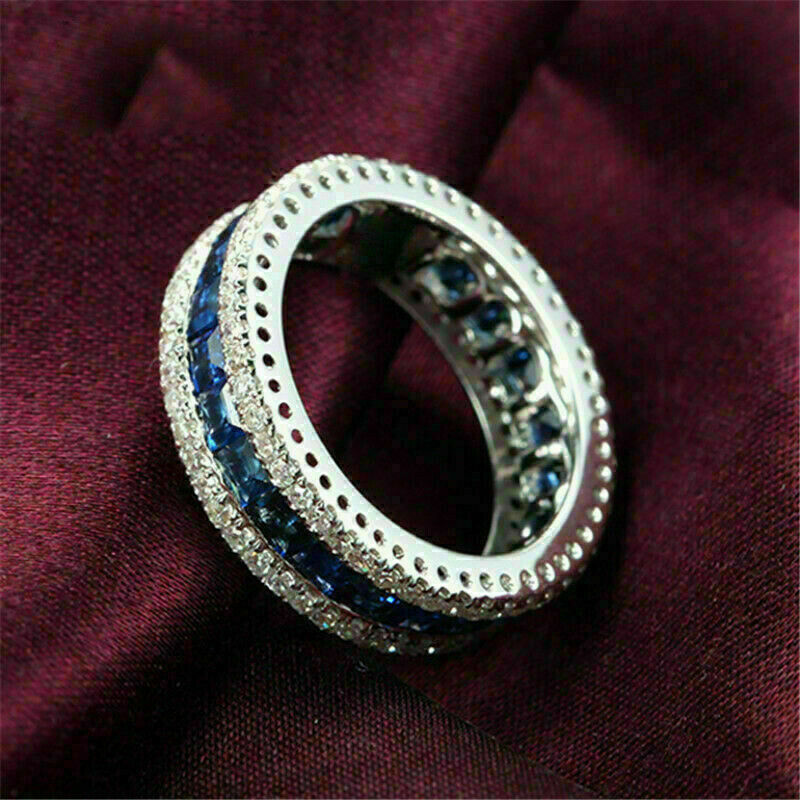 4Ct Princess Cut Blue Sapphire Full Eternity Wedding Band 14K White Gold Finish.