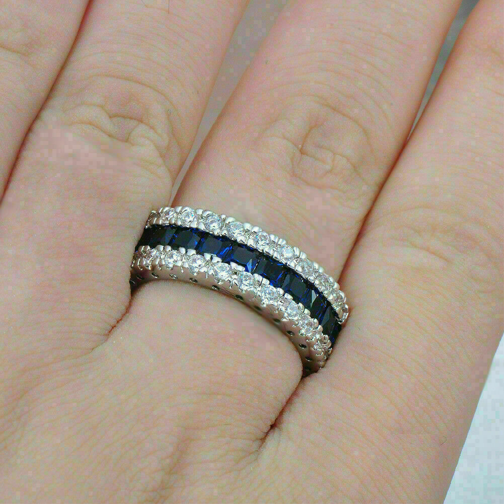 4Ct Princess Cut Blue Sapphire Full Eternity Wedding Band 14K White Gold Finish