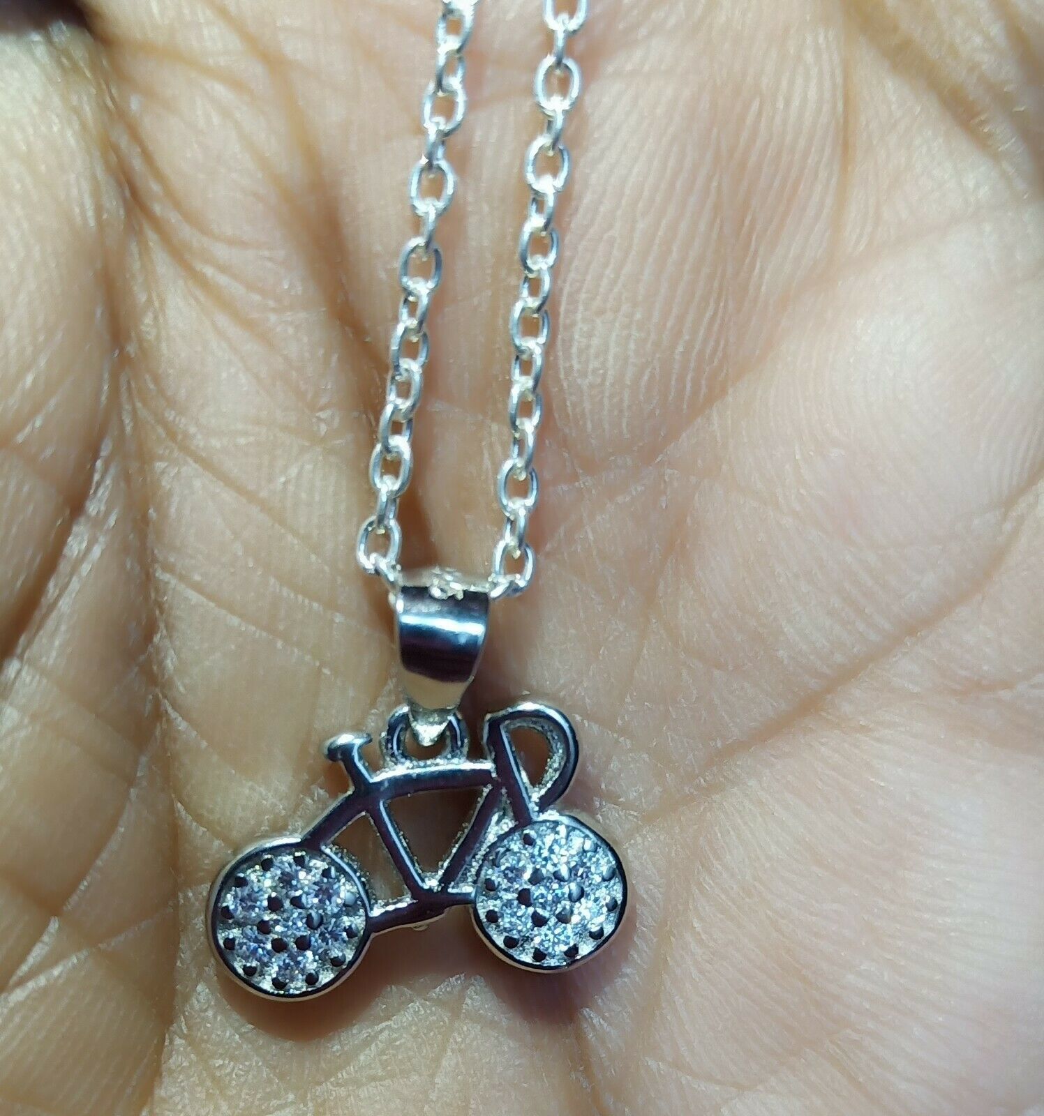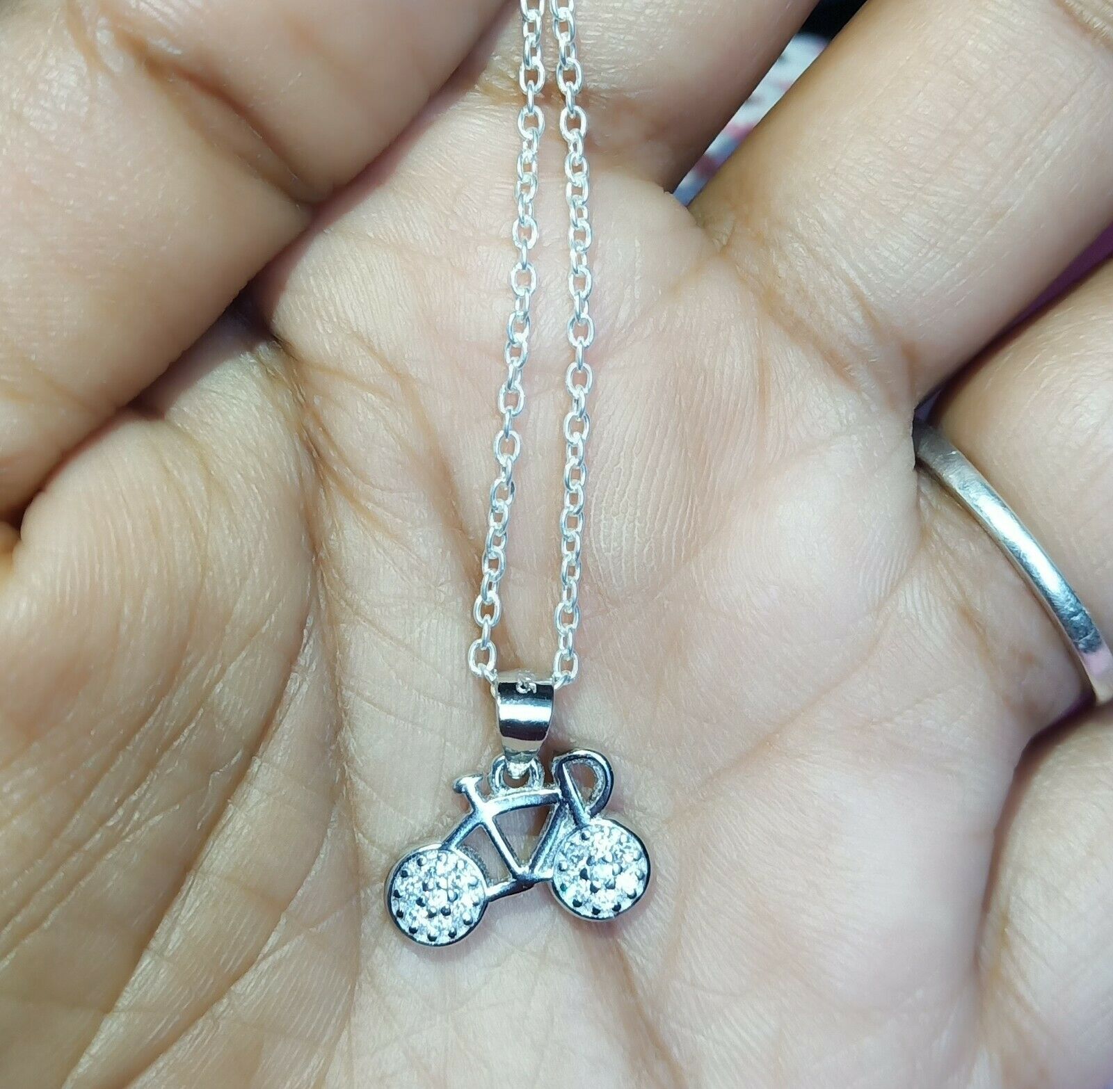 0.33Ct Round Diamond Bicycle Pendant Necklace 14K White Gold Finish Free Chain