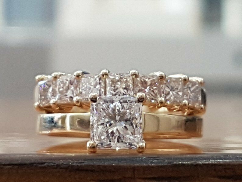 2.75Ct Princess Cut D/VVS1 Diamond Engagement Bridal Ring Set 14K Yellow Gold FN