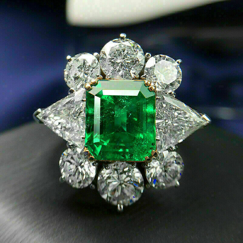 3.55Ct Emerald Green Emerald Halo Engagement Wedding Ring 14K White Gold Finish