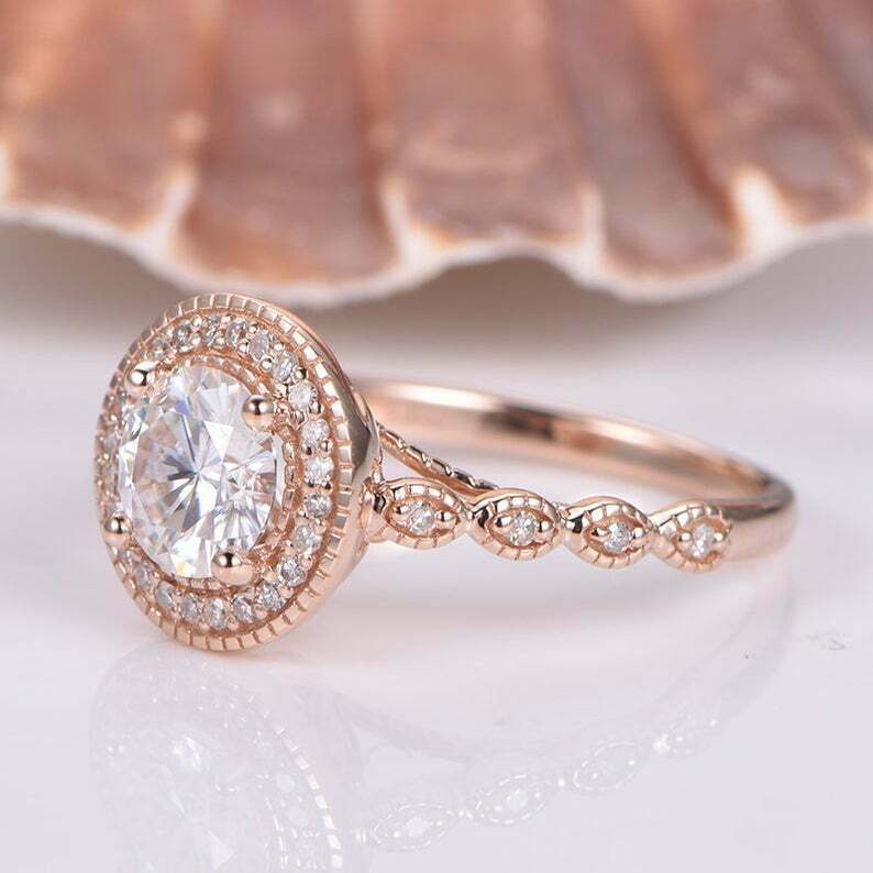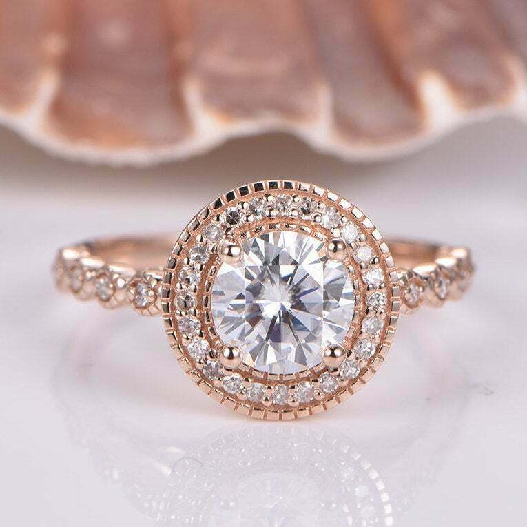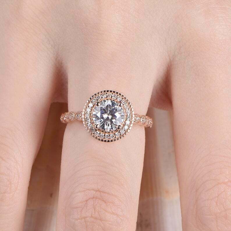 2.65Ct Round Cut D/VVS1 Diamond Halo Engagement Ring 14K Rose Gold Finish