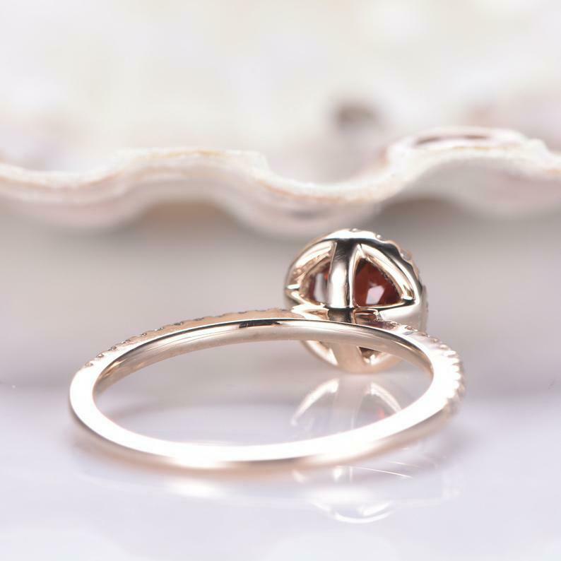 2.20Ct Round Brilliant Cut Red Garnet Halo Engagement Ring 14K Rose Gold Finish