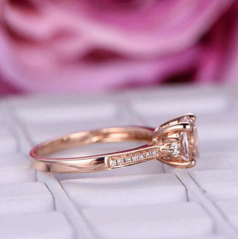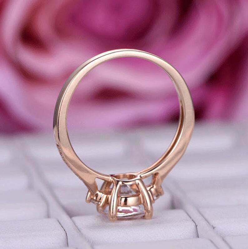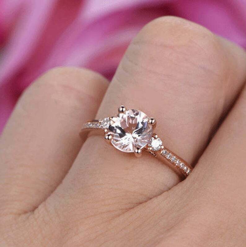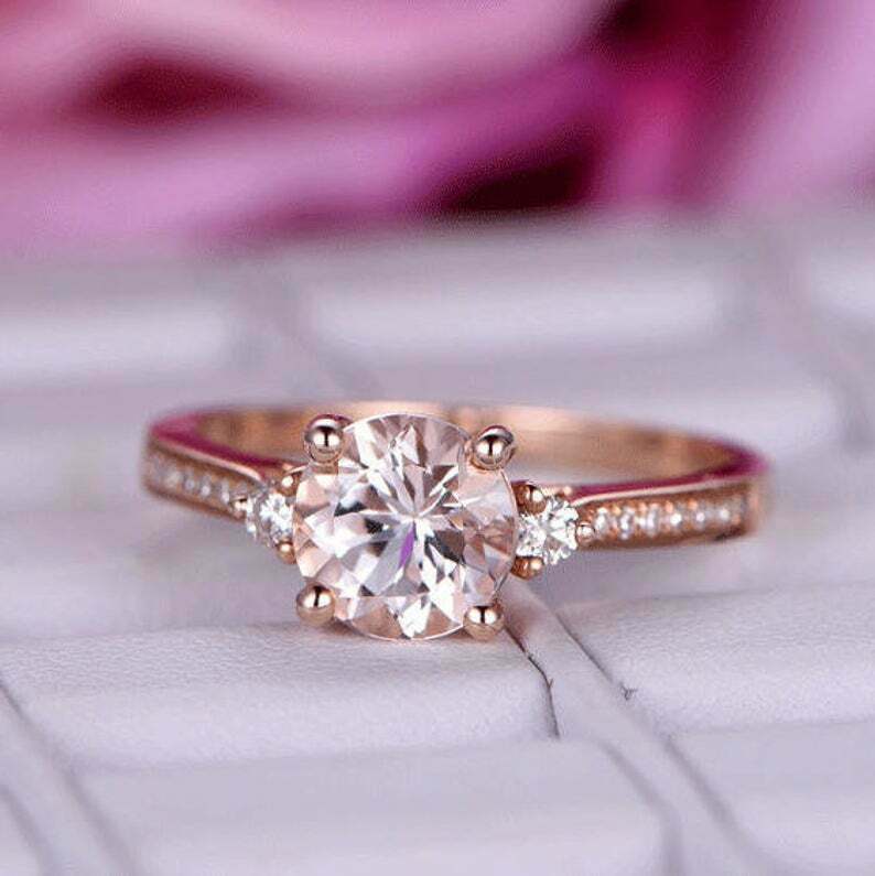 1.65Ct Round Cut Morganite Three Stone Engagement Ring In 18K Rose Gold Finish