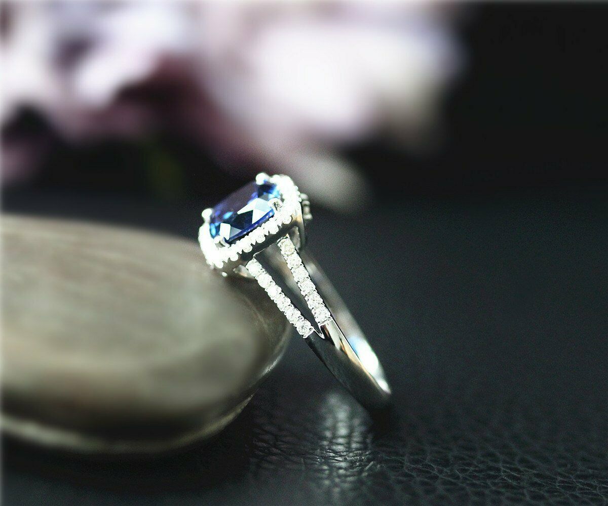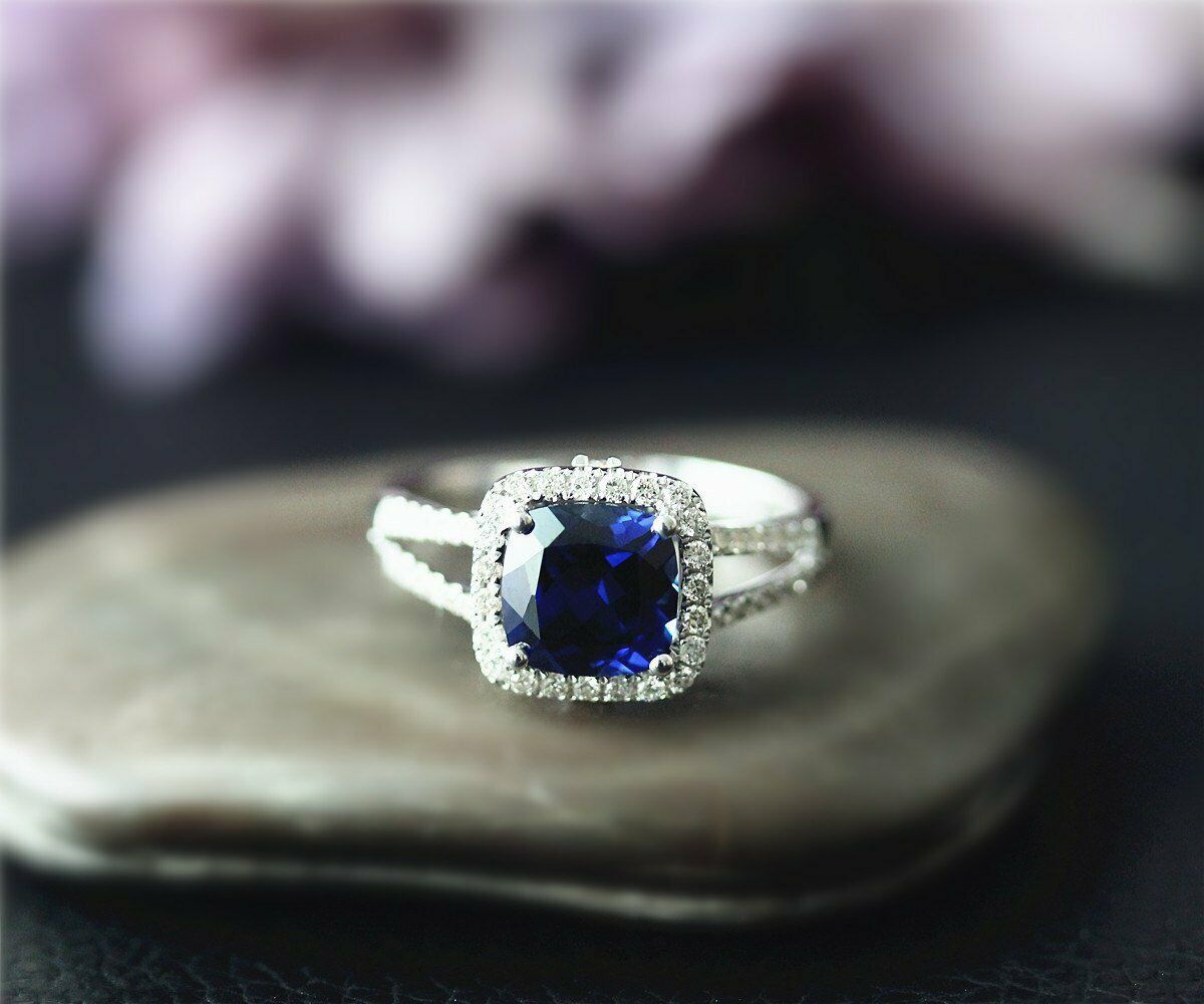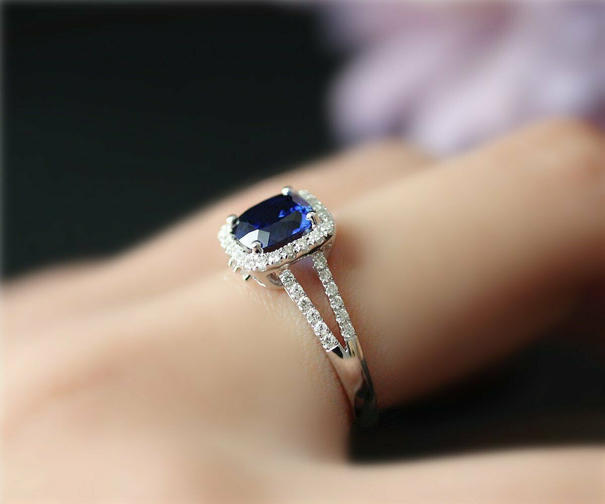 2Ct Cushion Brilliant Cut Blue Sapphire Halo and 50 similar items