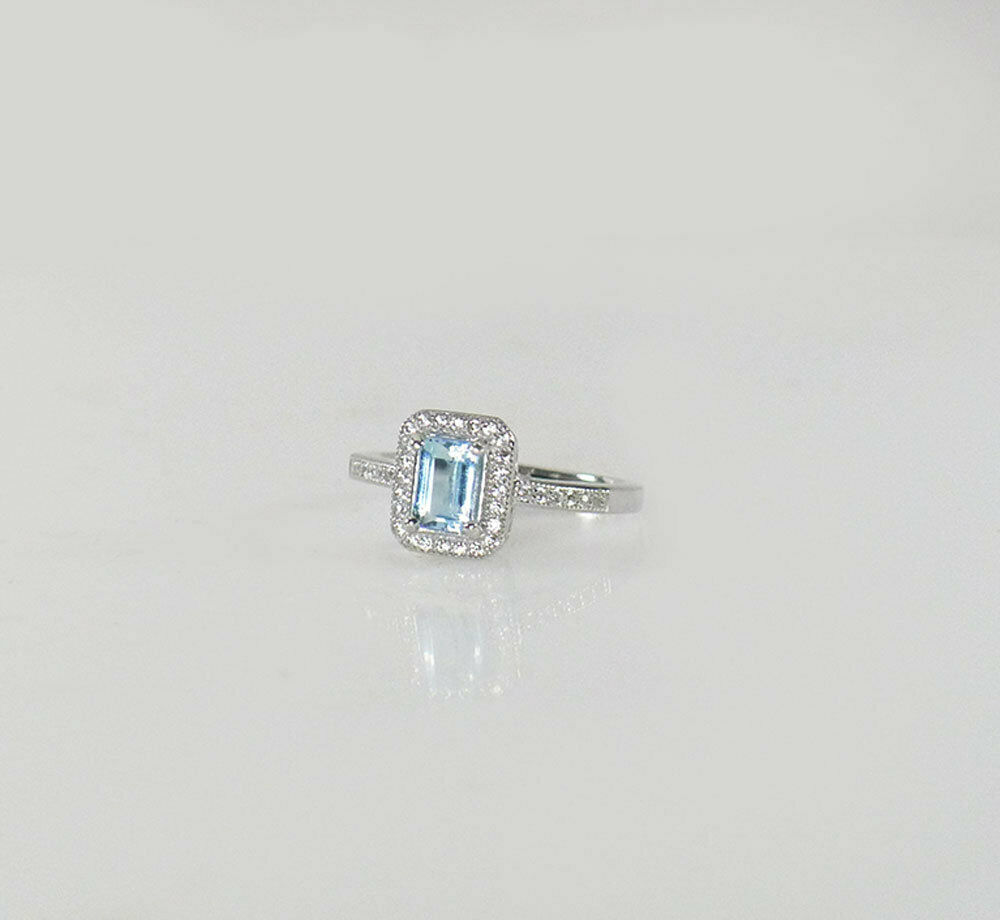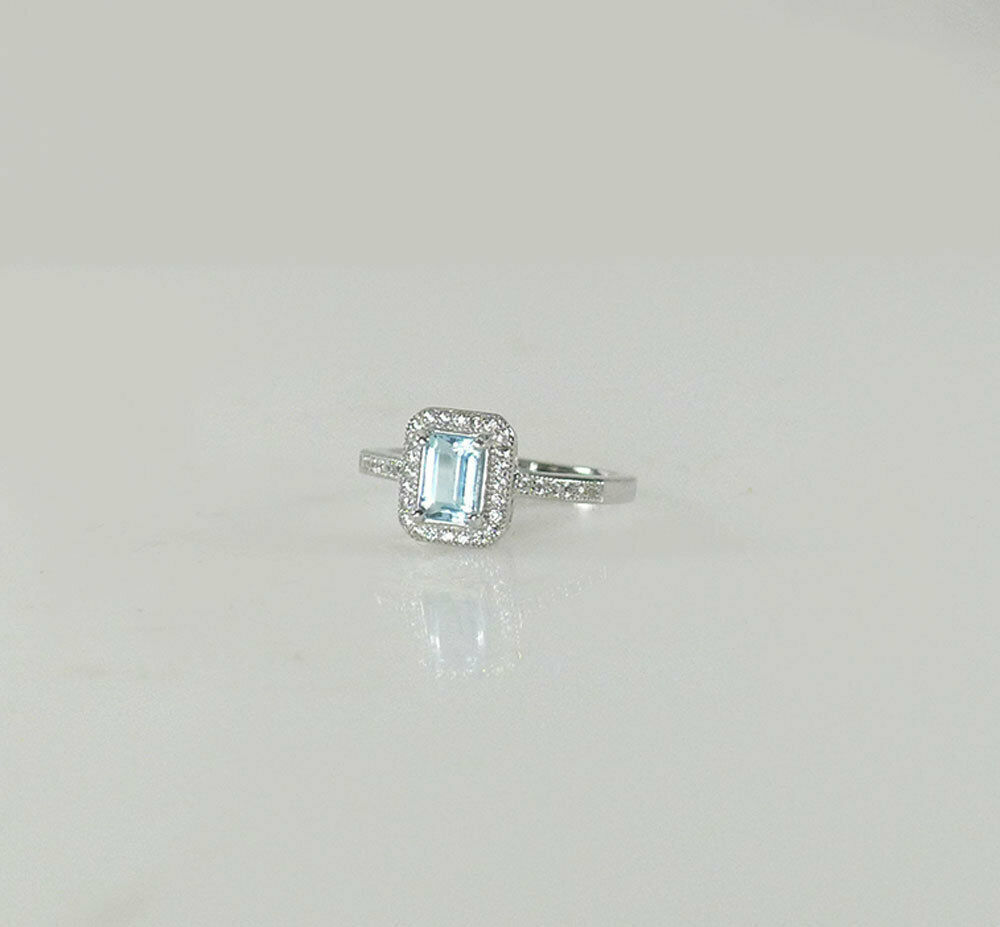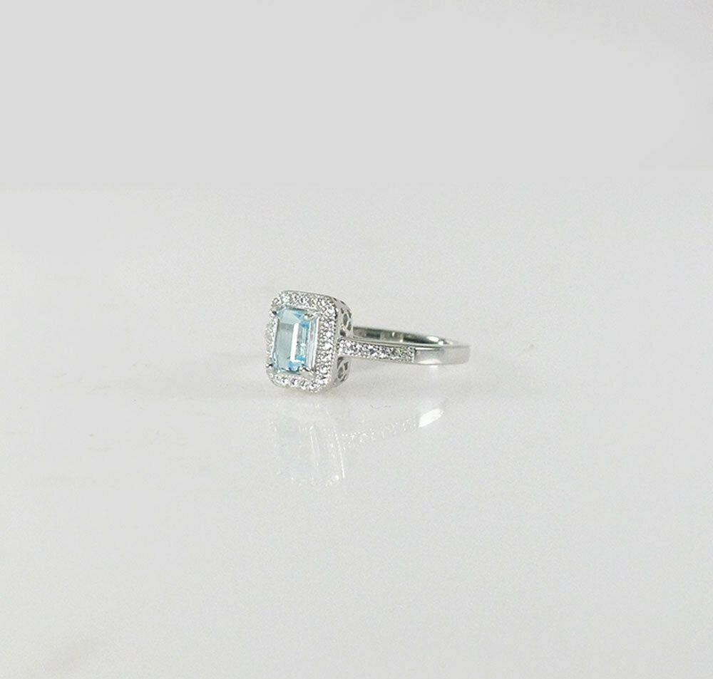 2.20Ct Emerald Cut Blue Aquamarine Halo and 50 similar items