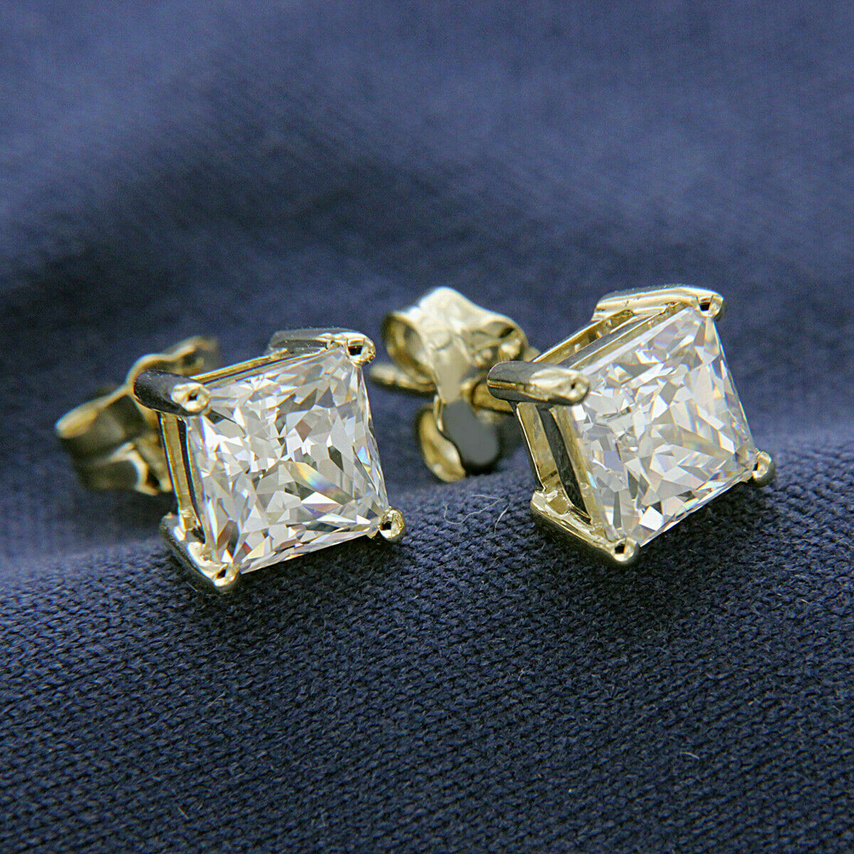 4Ct Princess Cut VVS1/D Diamond Solitaire Stud Earrings In 14K Rose Gold Finish