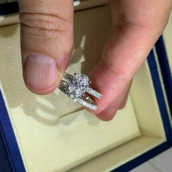 2.55Ct Oval Cut VVS1/D Diamond Bridal Set Engagement Ring 14K White Gold Finish