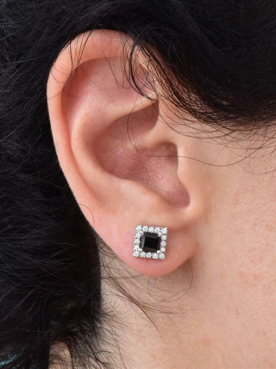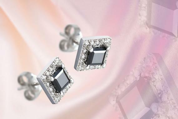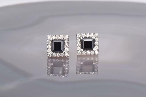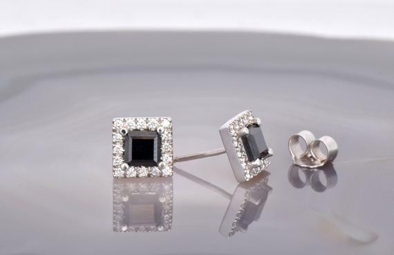 4Ct Princess Cut Black Diamond Solitaire Stud Earrings 18K White Gold Finish