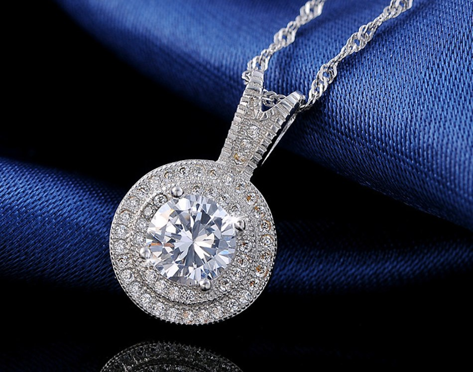 1.75Ct Round Cut VVS1/D Diamond Halo Pendant 14K White Gold Finish Free Chain
