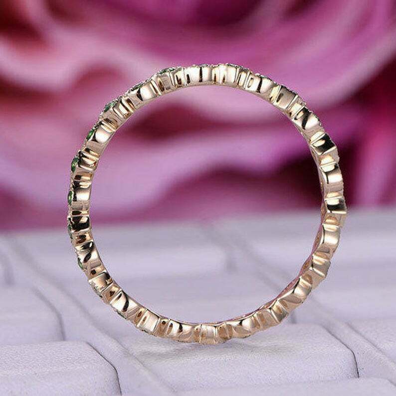 1Ct Round Cut Green Emerald Full Eternity Wedding Band Ring 14K Rose Gold Finish
