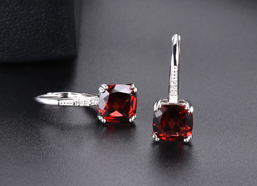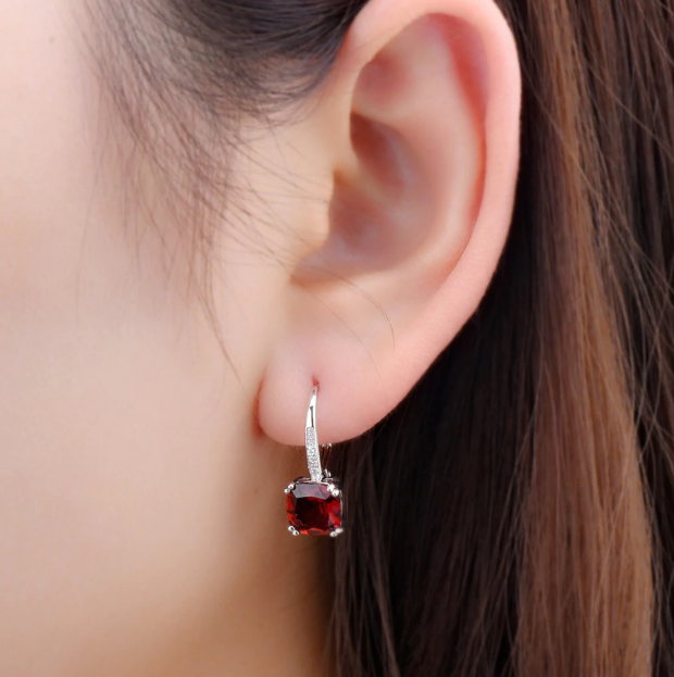 4Ct Cushion Cut Red Ruby Solitaire Drop/Dangle Earrings 14K White Gold Finish