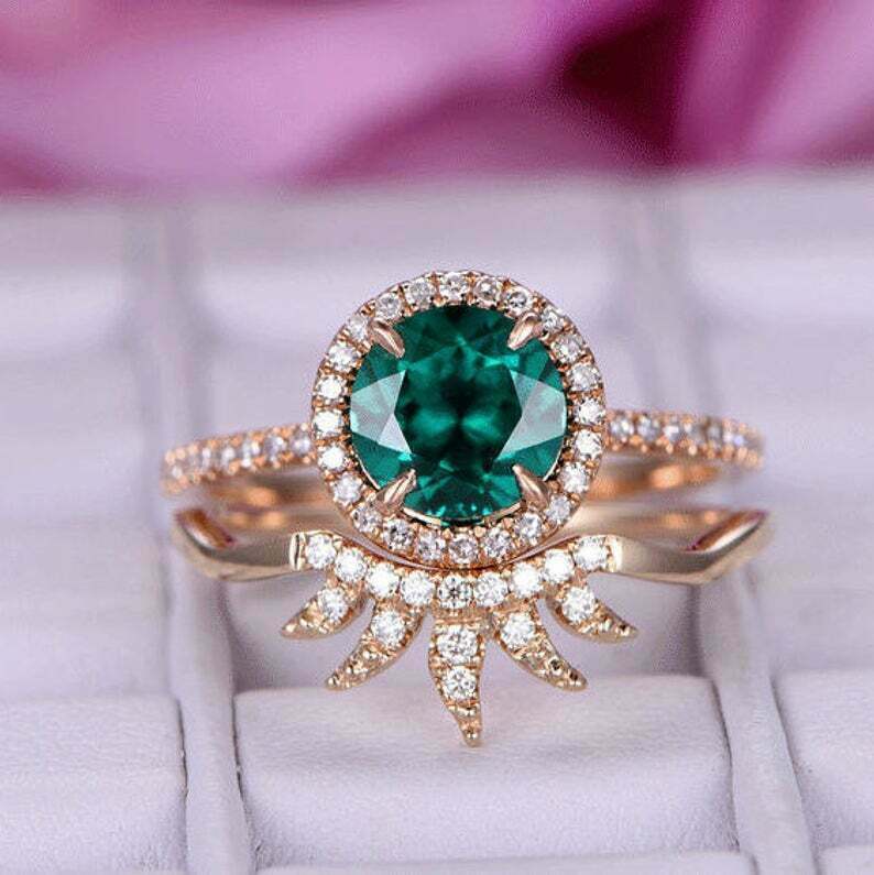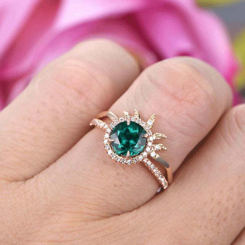 2.65Ct Round Cut Green Emerald Bridal Set and similar items