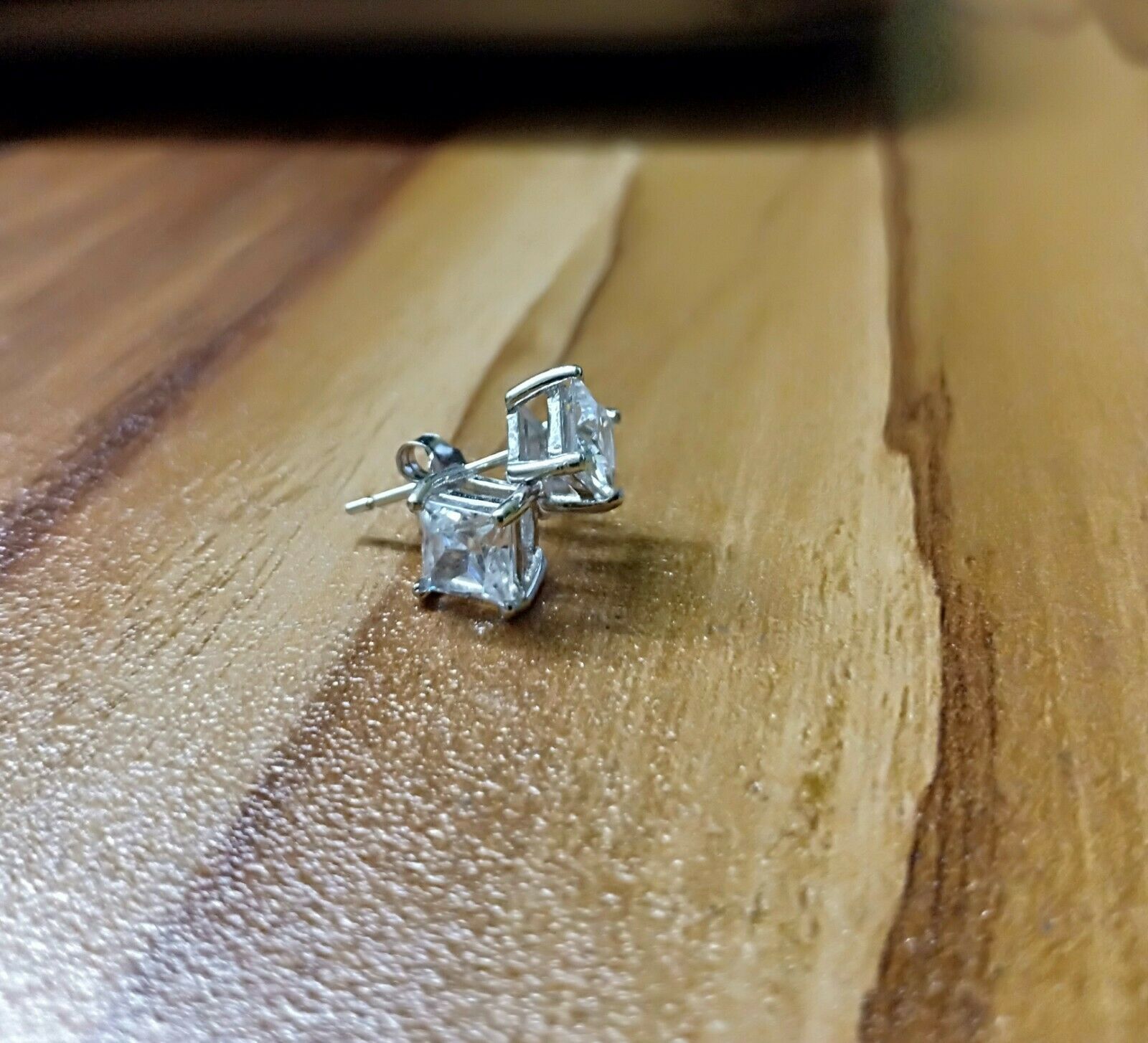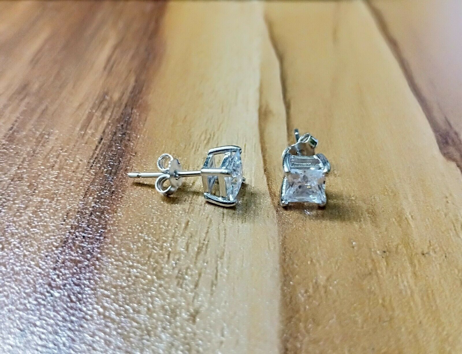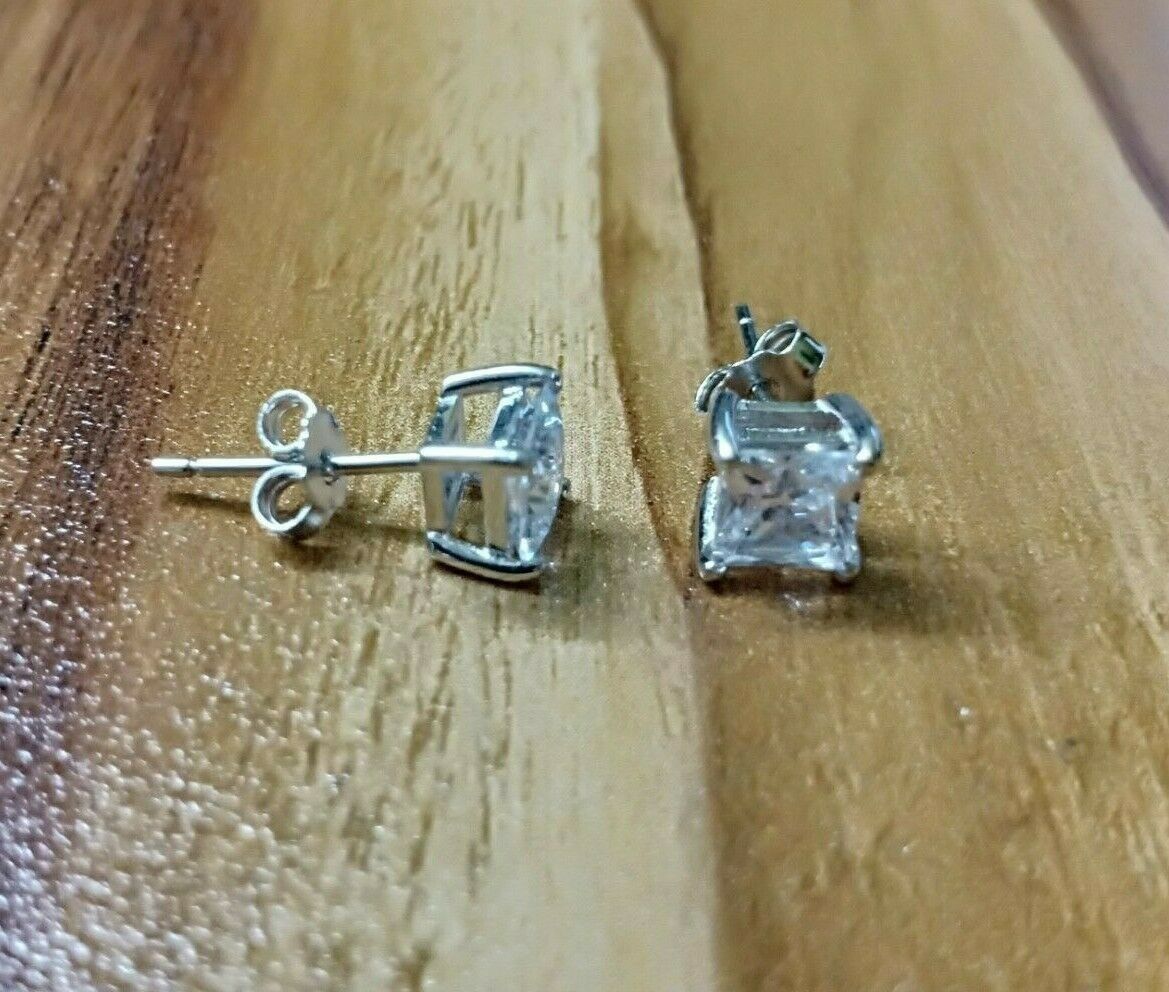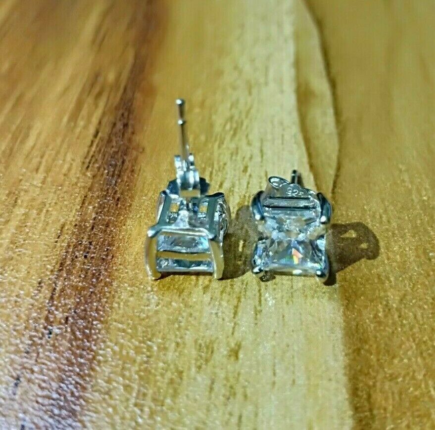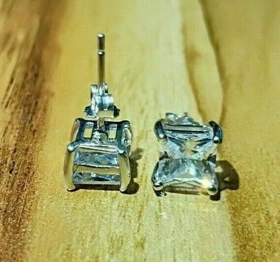 4Ct Princess Cut VVS1/D Diamond Solitaire Earrings \14K White Gold Finish