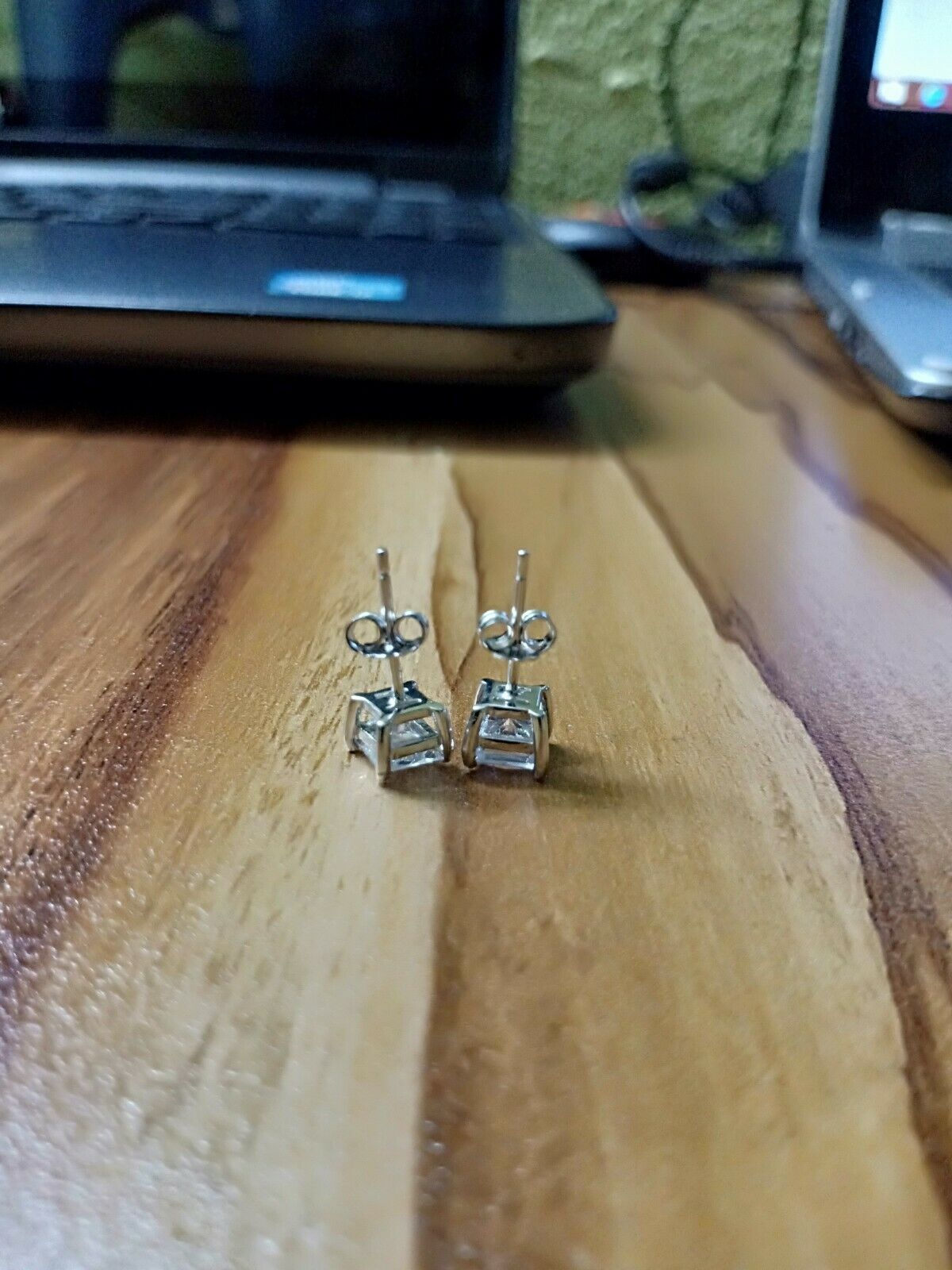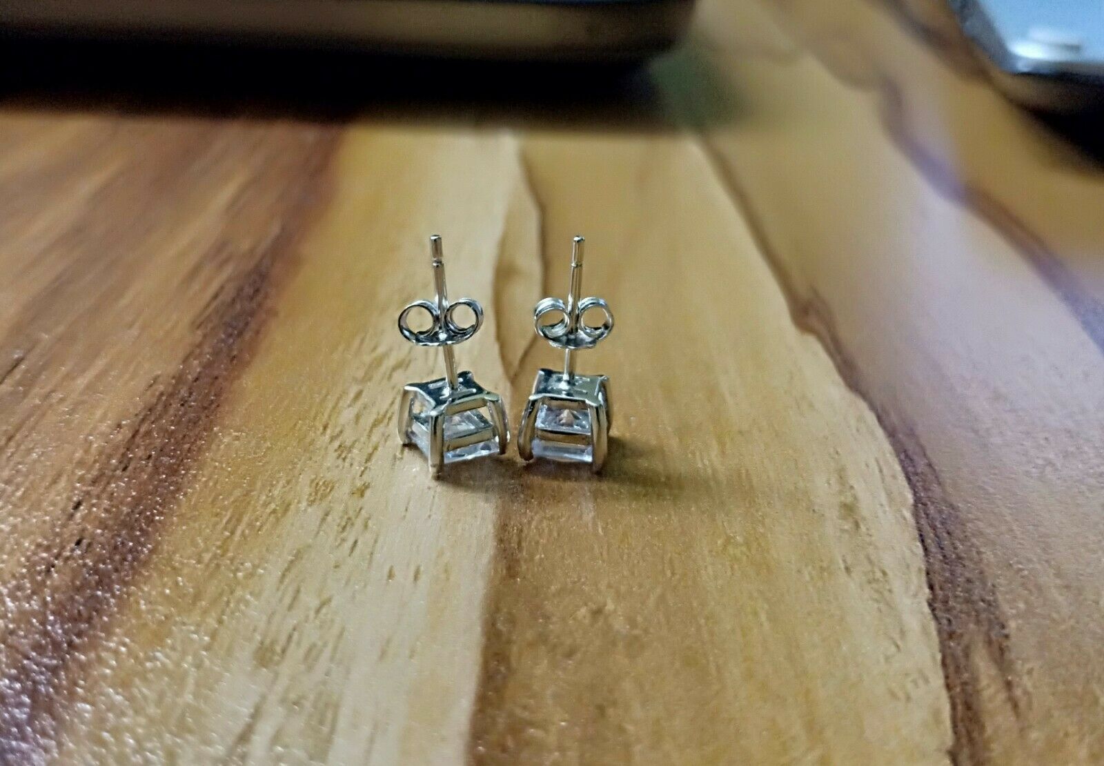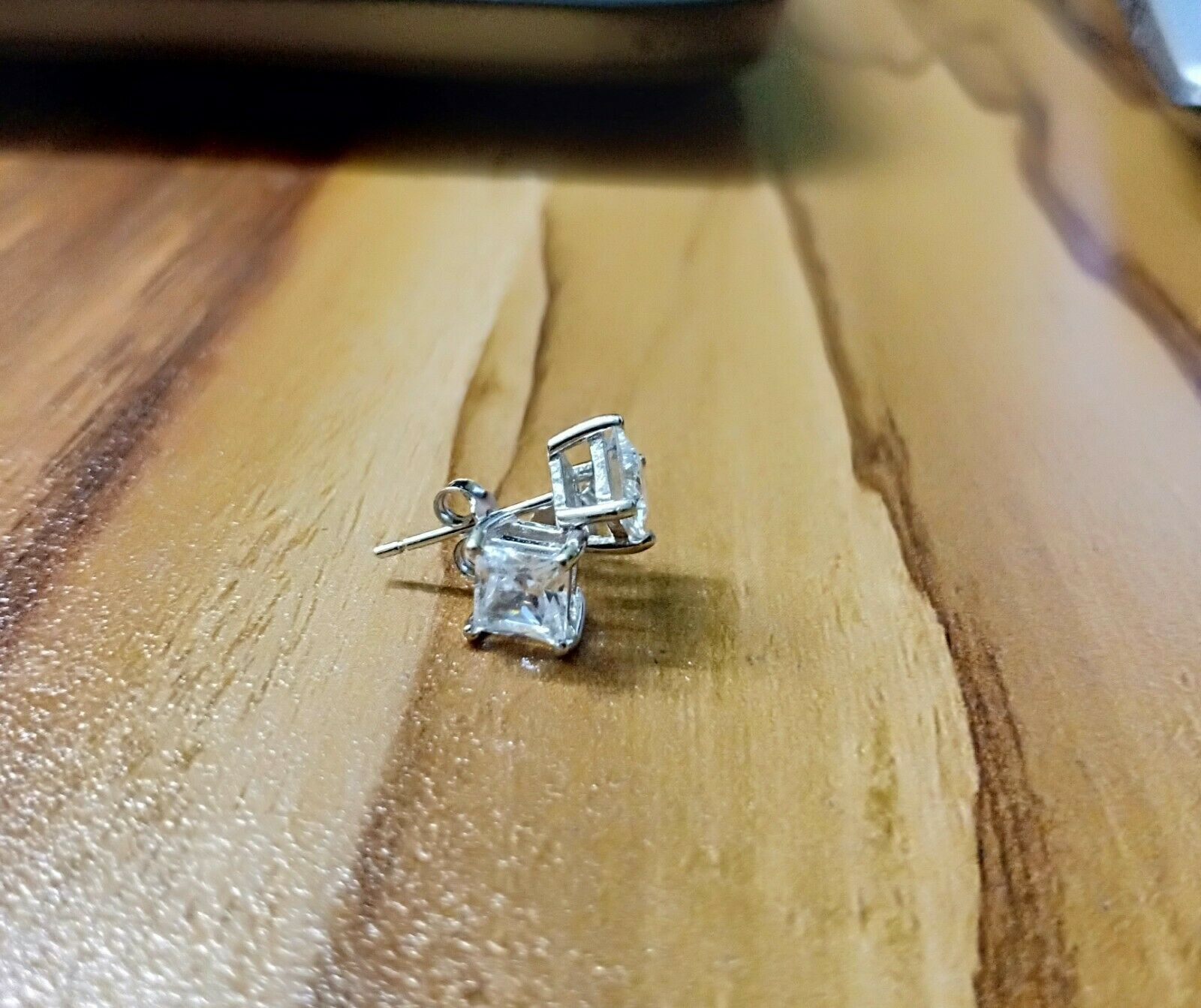 4Ct Princess Cut VVS1/D Diamond Solitaire Earrings \14K White Gold Finish
