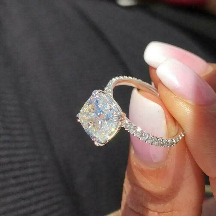 2Ct Cushion Cut VVS1/D Diamond Solitaire Engagement Ring 18K White Gold Finish
