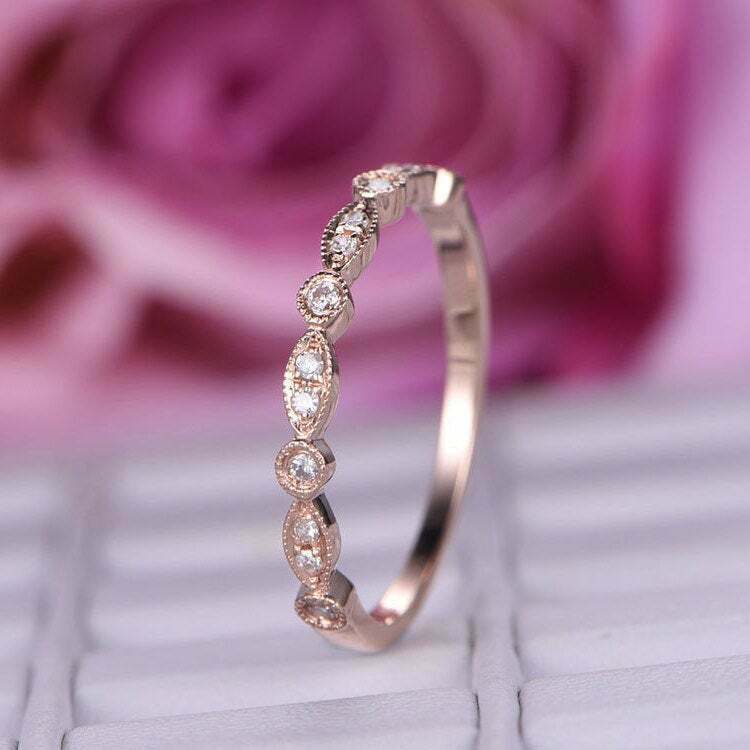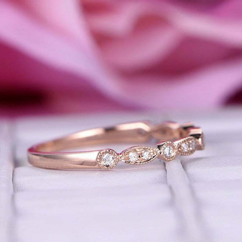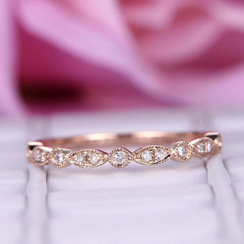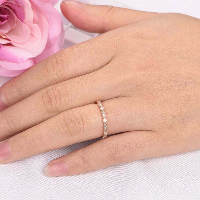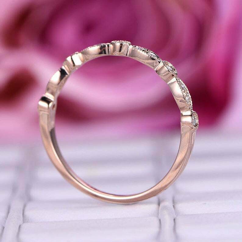 0.65Ct Round-Cut VVS1 Diamond Half Eternity Wedding Band Ring 18K Rose Gold FiN
