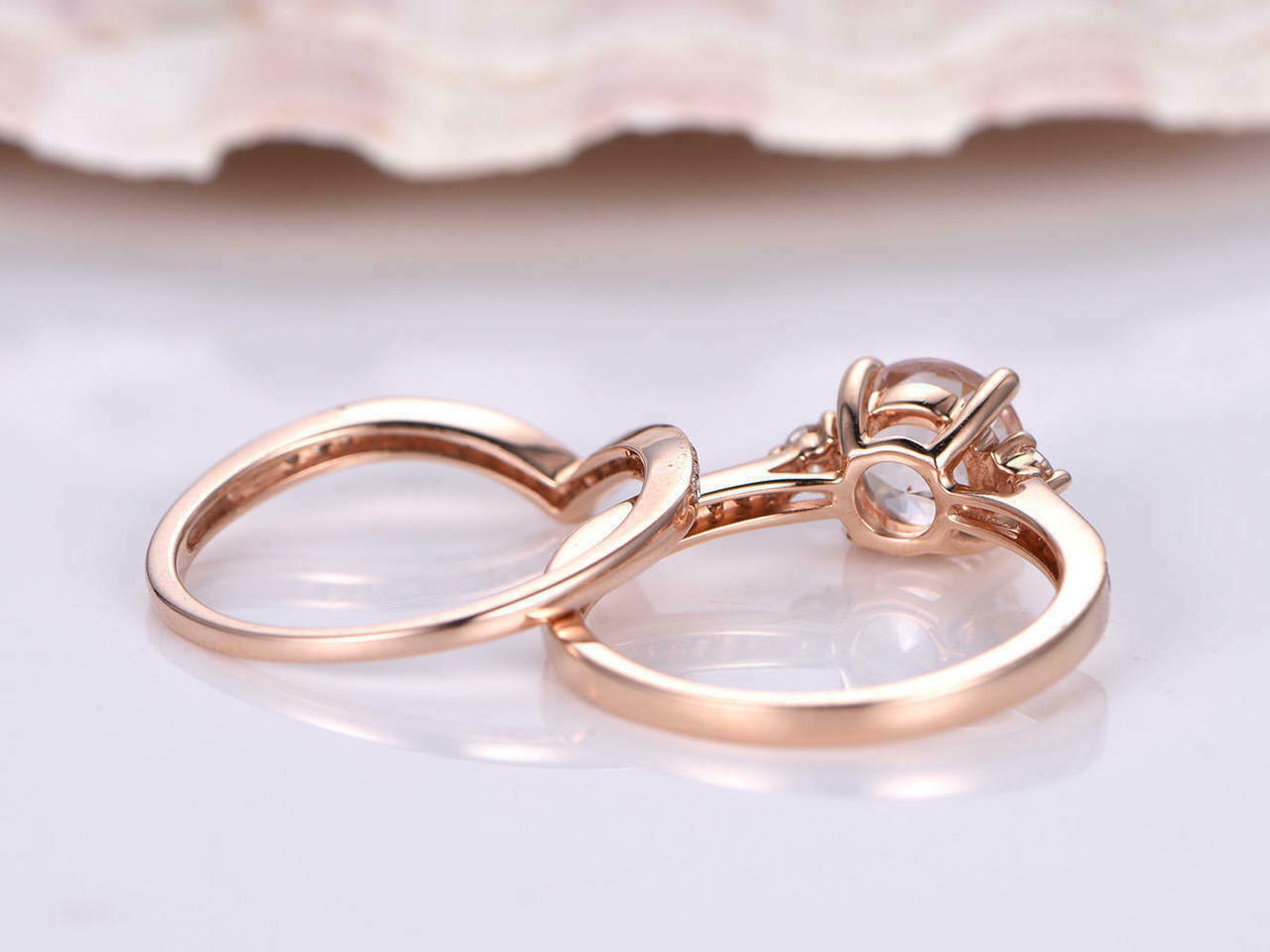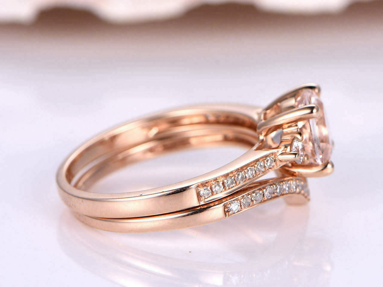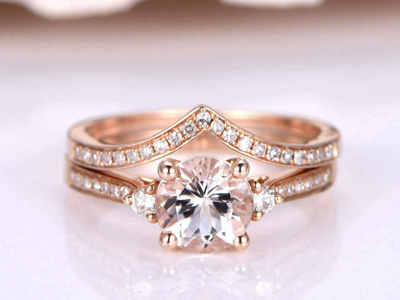 2.65Ct Round Cut Morganite Bridal Set Engagement Ring Solid 14K Rose Gold Finish