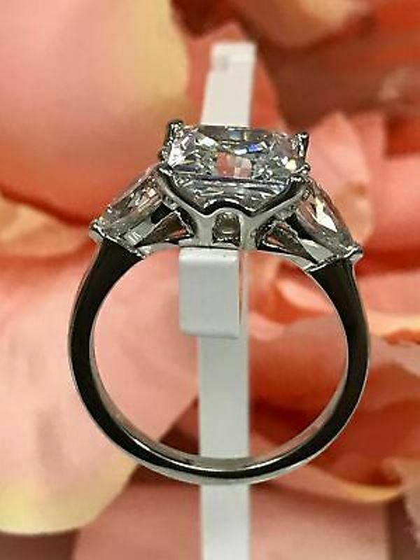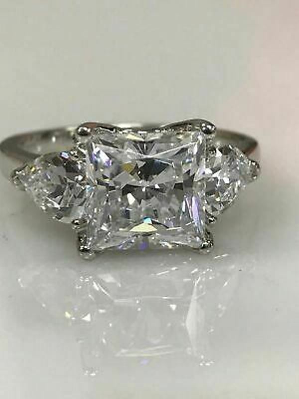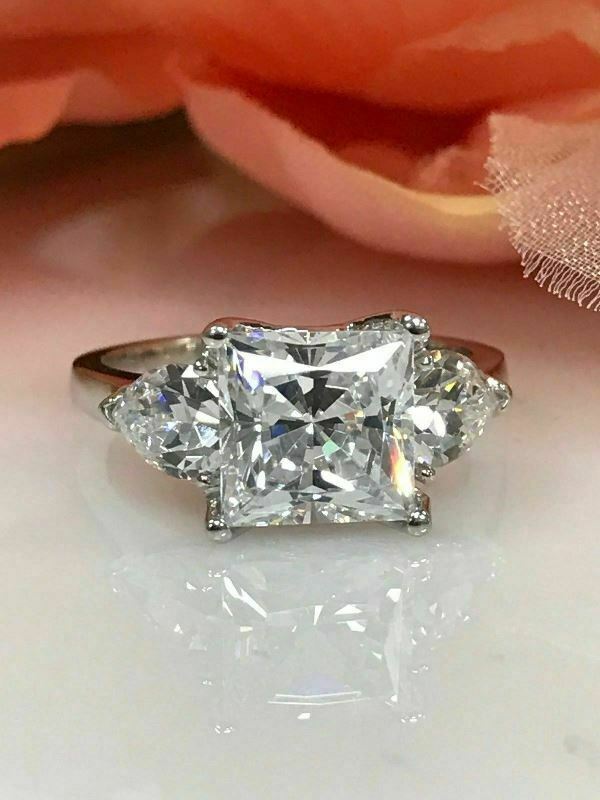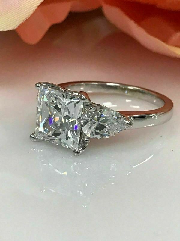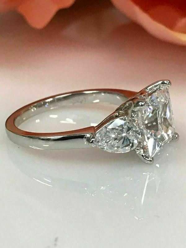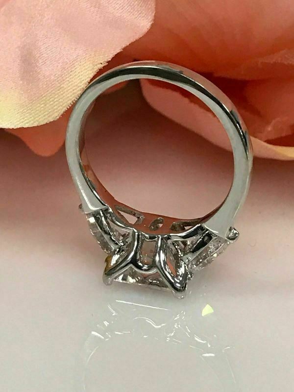 4Ct Princess-Cut VVS1/D Diamond Three Stone Engagement Ring 14K White Gold Over