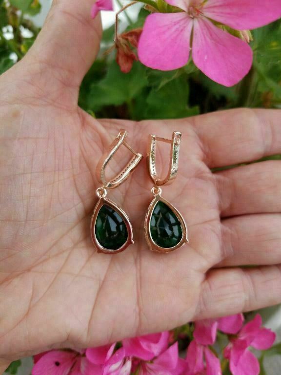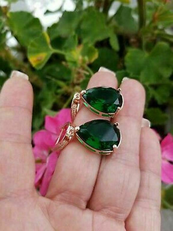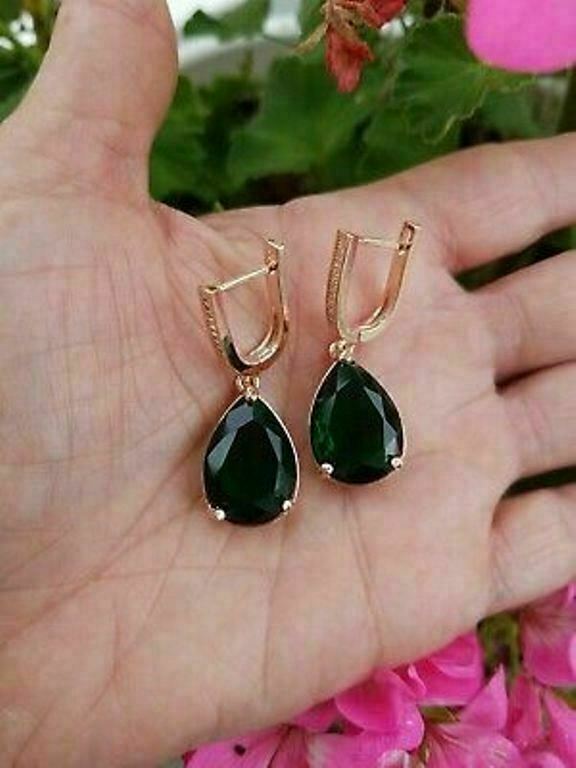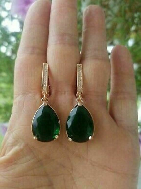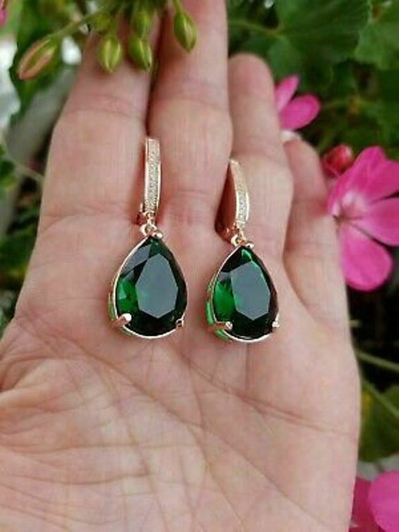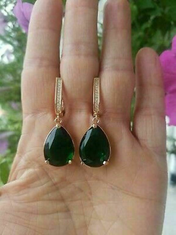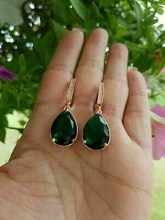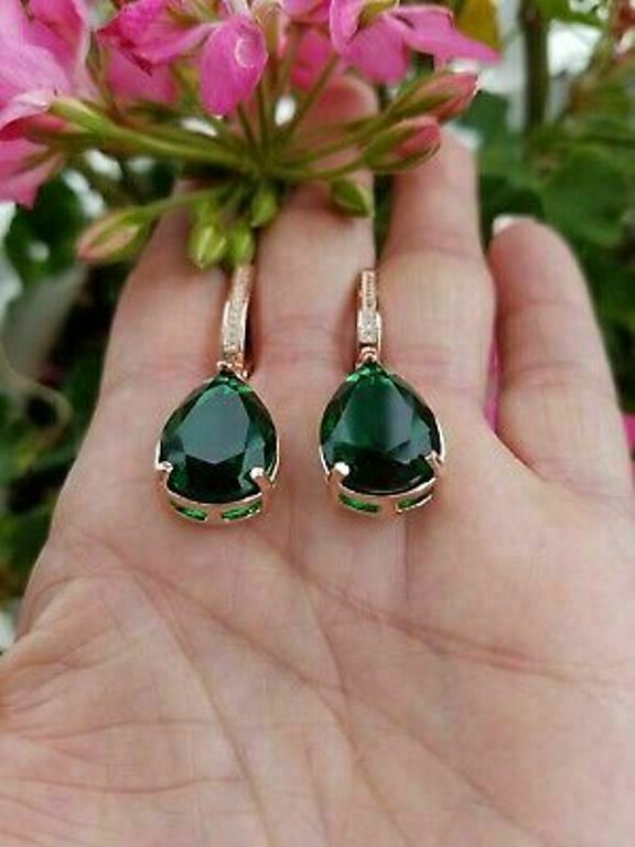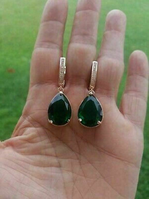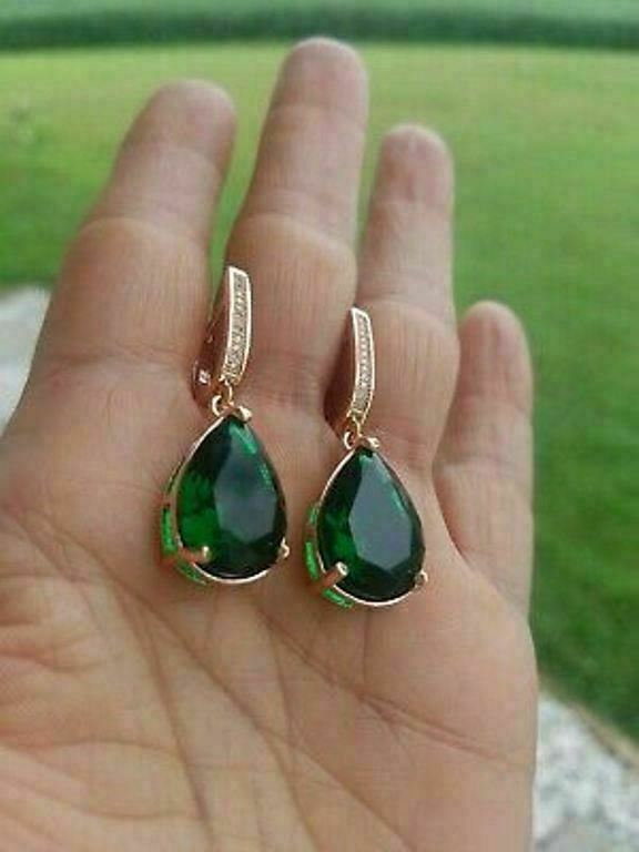 5Ct Pear Cut Green Emerald Women's Drop & Dangle Earrings 14K Rose Gold Finish