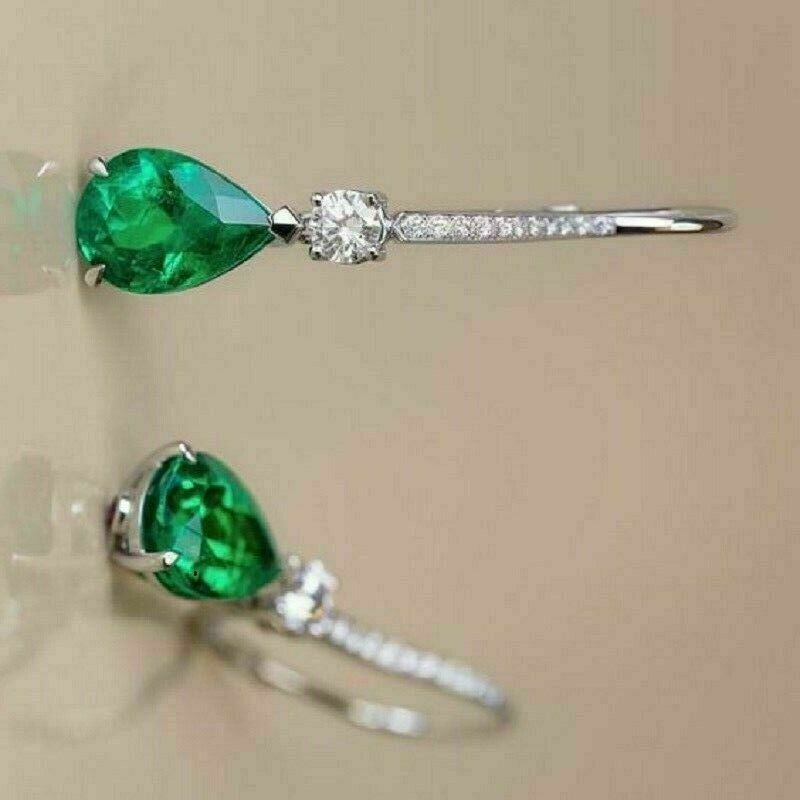 4.20Ct Pear Cut Green Emerald Drop Dangle and similar items