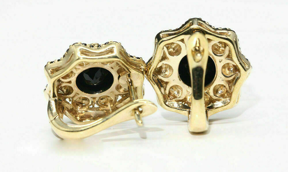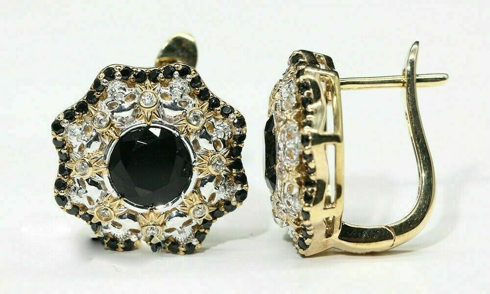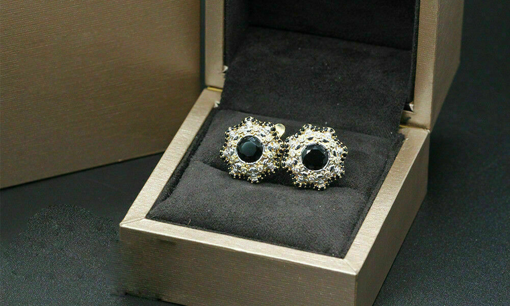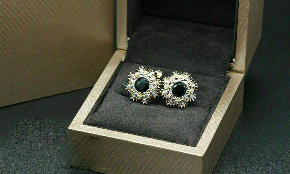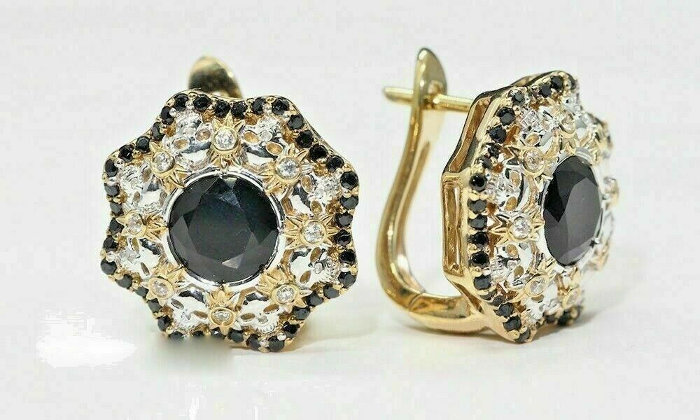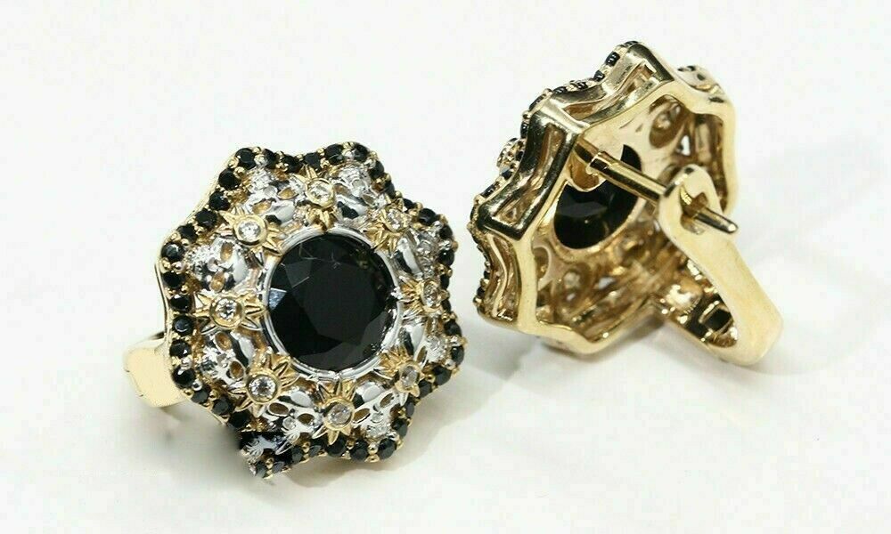 2.30Ct Round Brilliant Black Diamond Halo Stud Earrings 14K Yellow Gold Finish