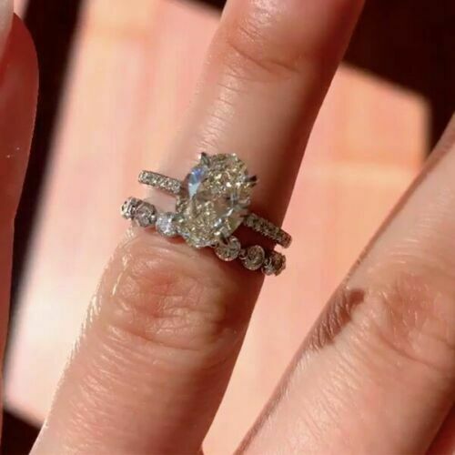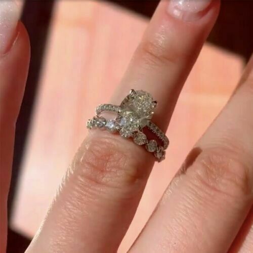 3.00Ct Brilliant Oval Diamond Engagement Wedding Ring Set 14K White Gold Finish