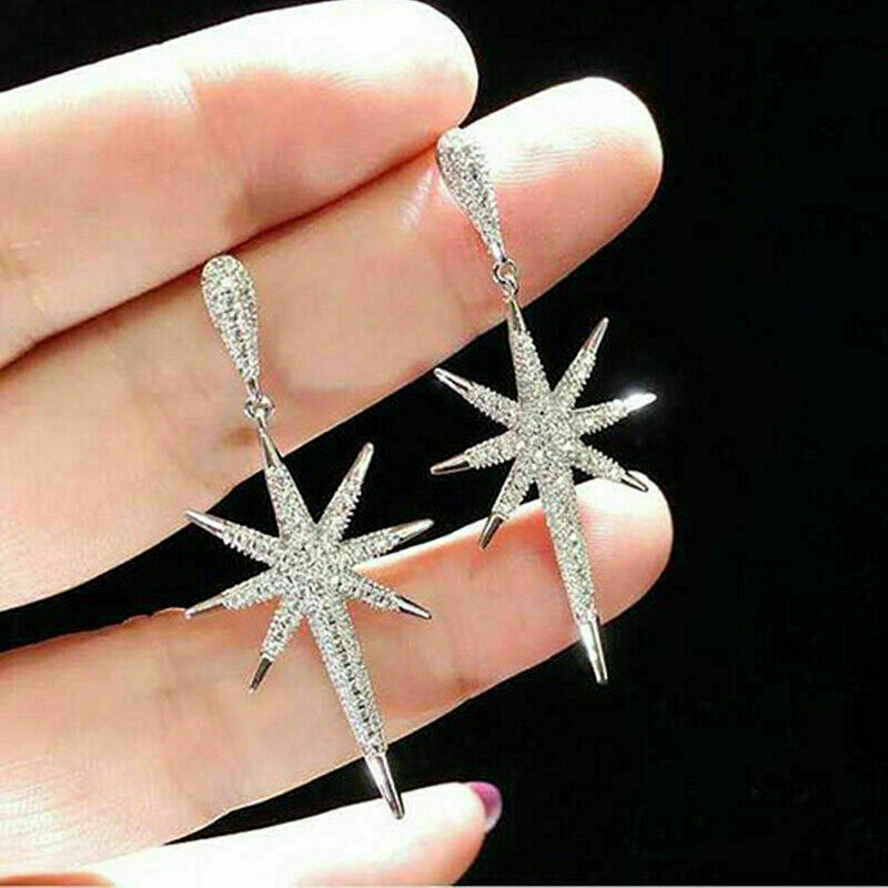 2Ct Round Cut VVS1/D Diamond Drop/Dangle Elegant Earrings 18K White Gold Finish