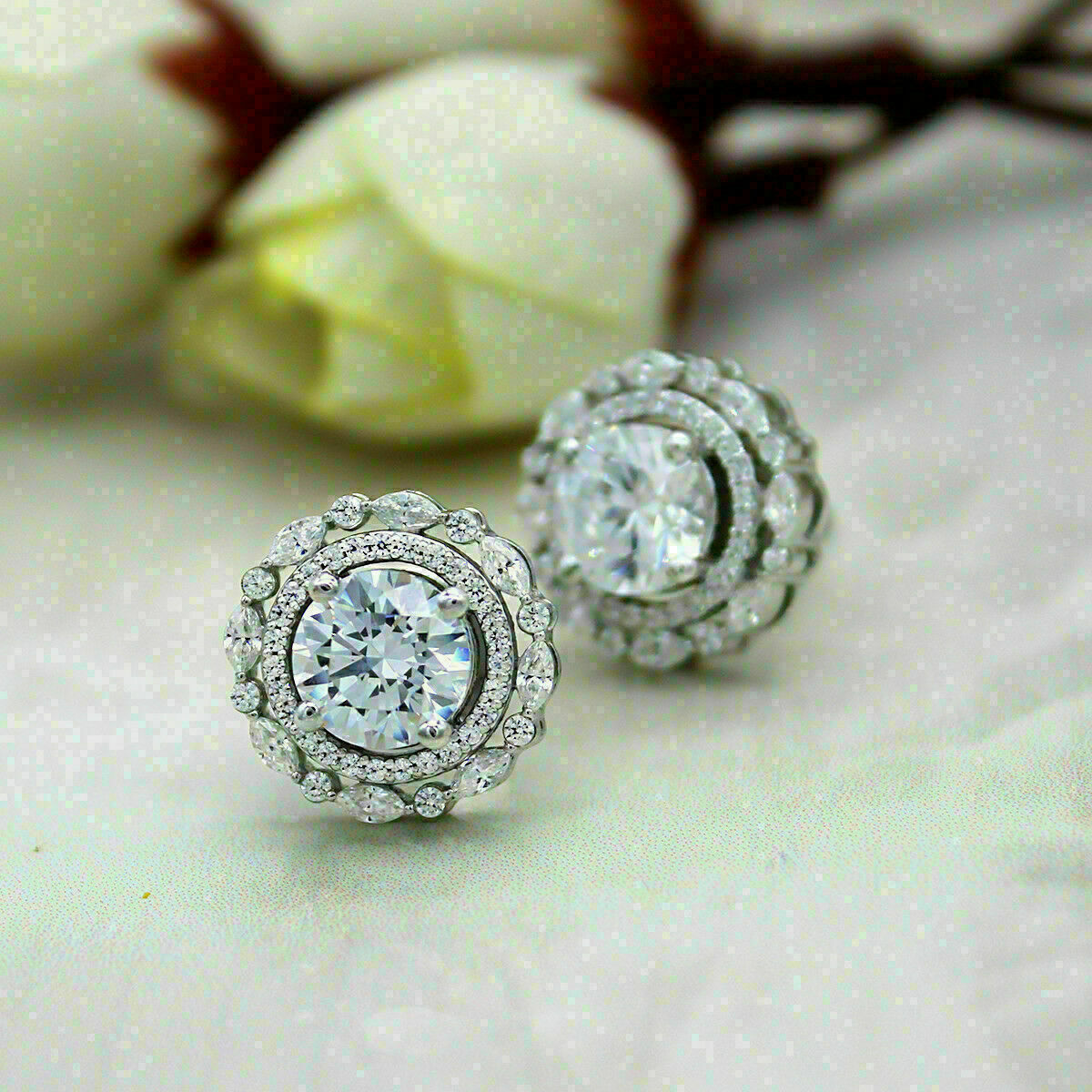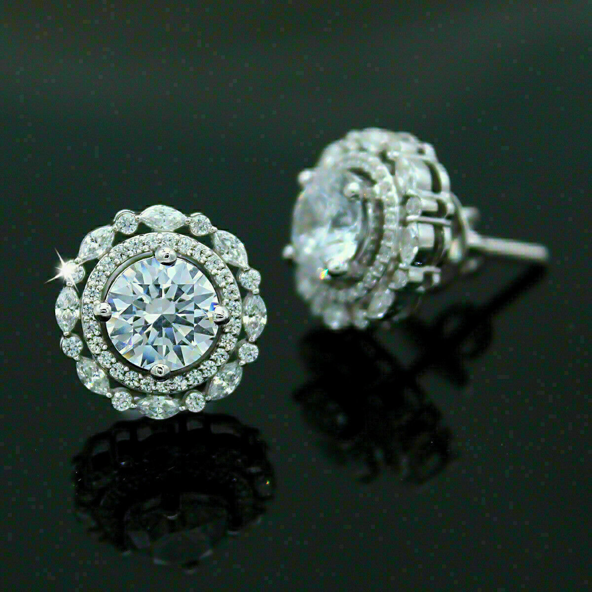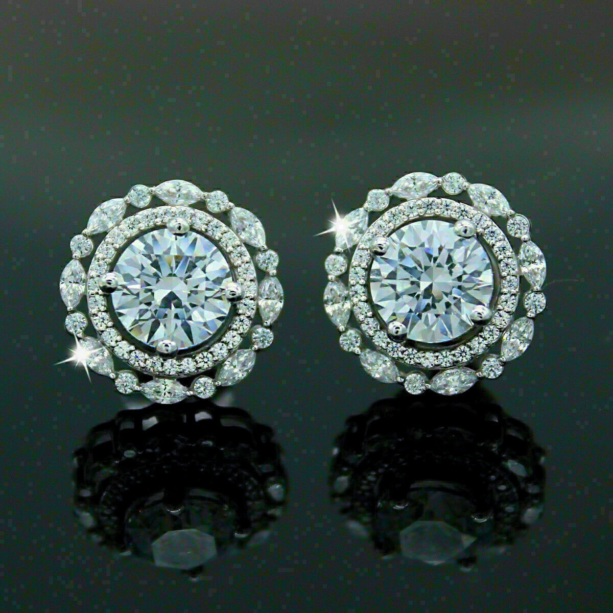 2.20Ct Round Cut VVS1 Diamond Beautiful Halo Stud Earrings 14K White Gold Finish