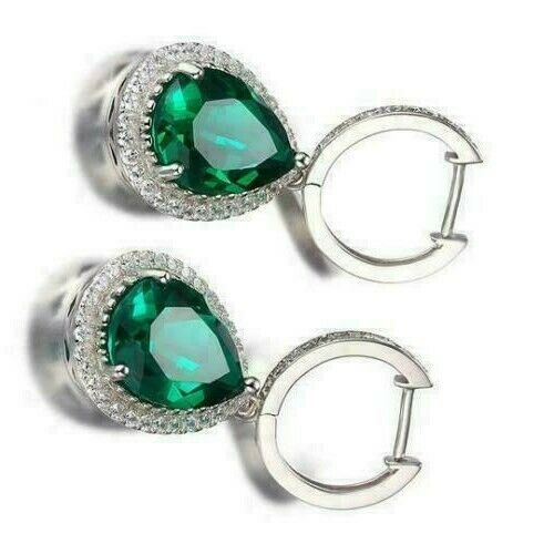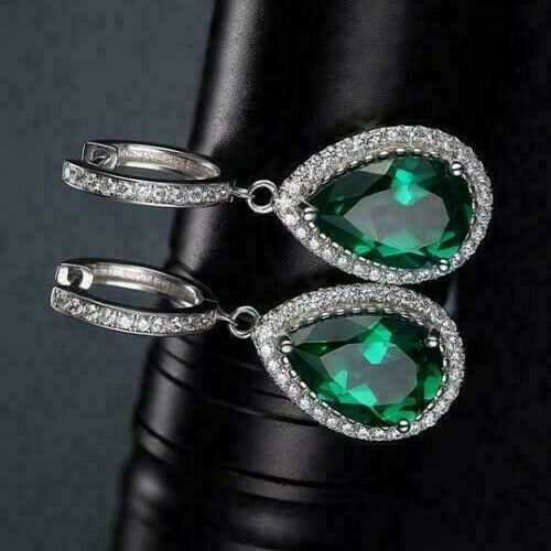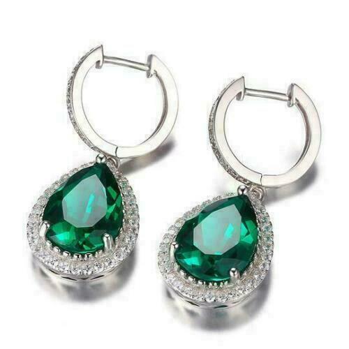 4.45Ct Pear Cut Green Emerald Drop/Dangle Earrings 14K White Gold Finish