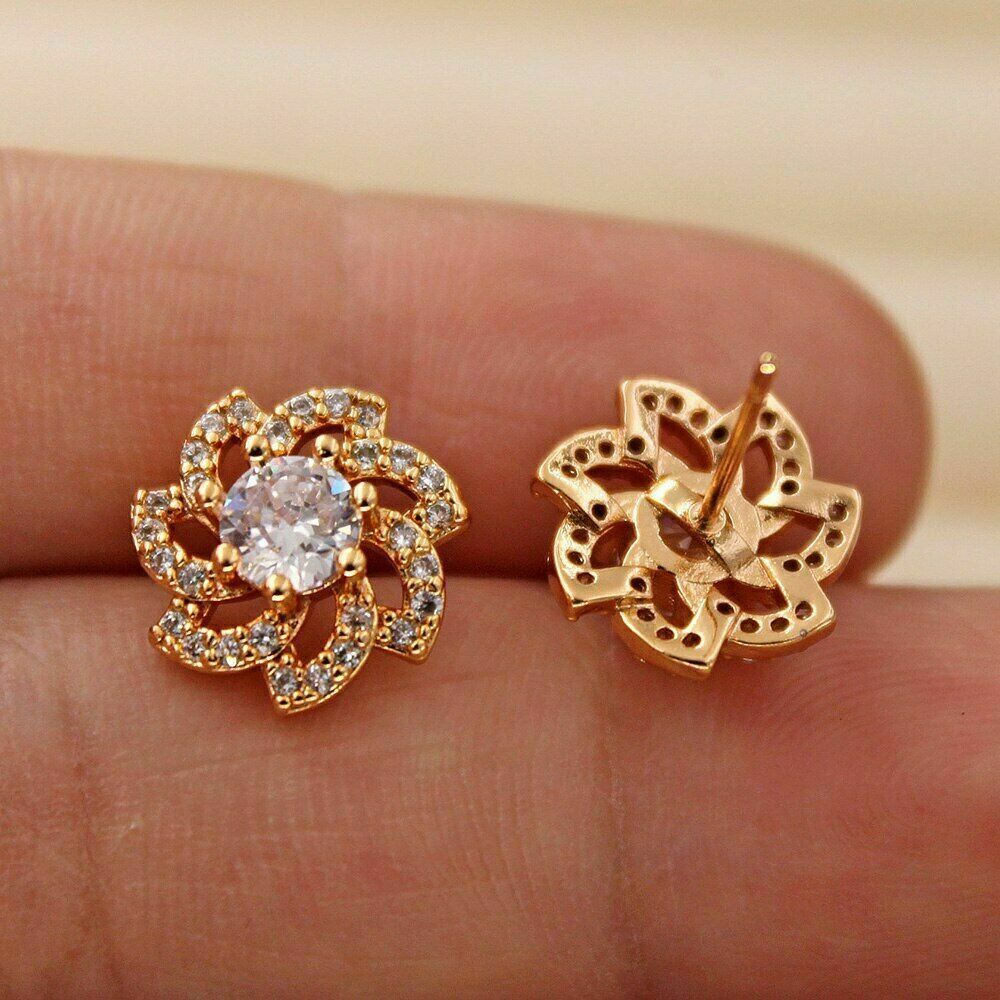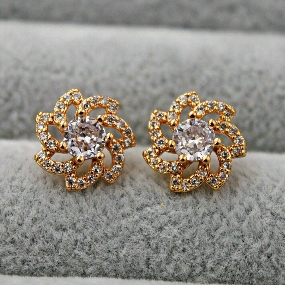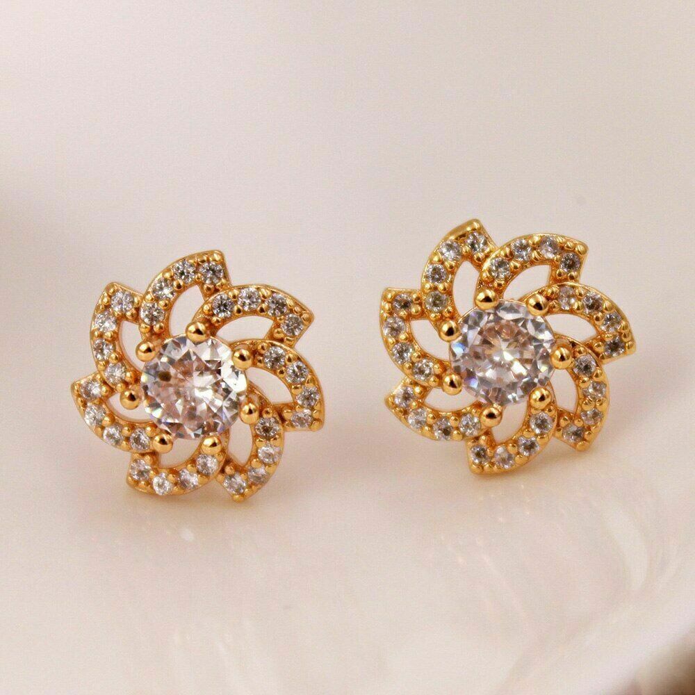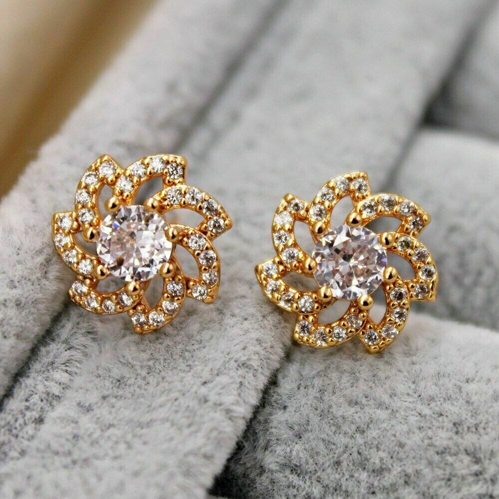 2.20Ct Round Cut VVS1/D Diamond Sunflower Stud Earrings 14K Yellow Gold Finish
