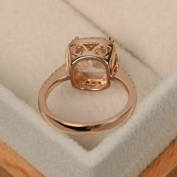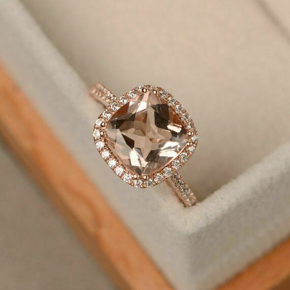 2.50Ct Cushion Brilliant Cut Morganite Halo Engagement Ring 14K Rose Gold Finish