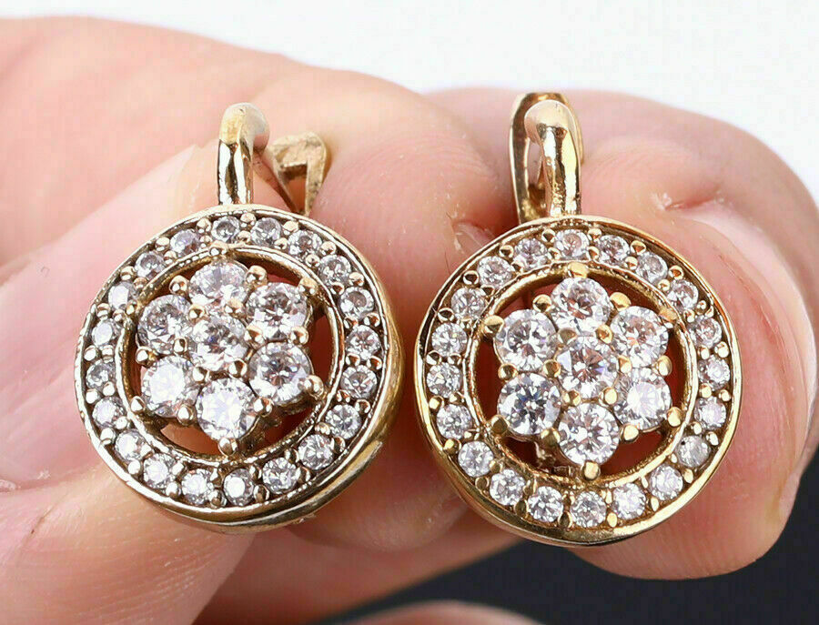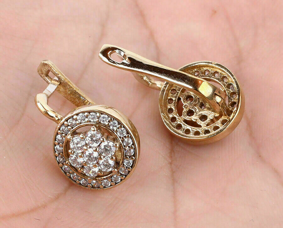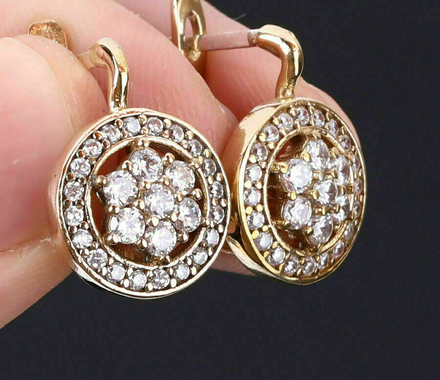 2Ct Round Cut VVS1 Diamond Cluster Stud Earrings 14k Yellow Gold Finish