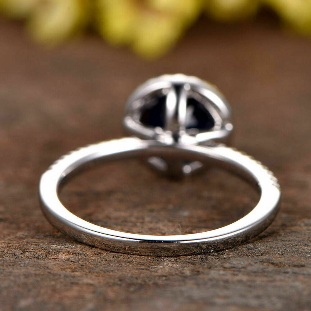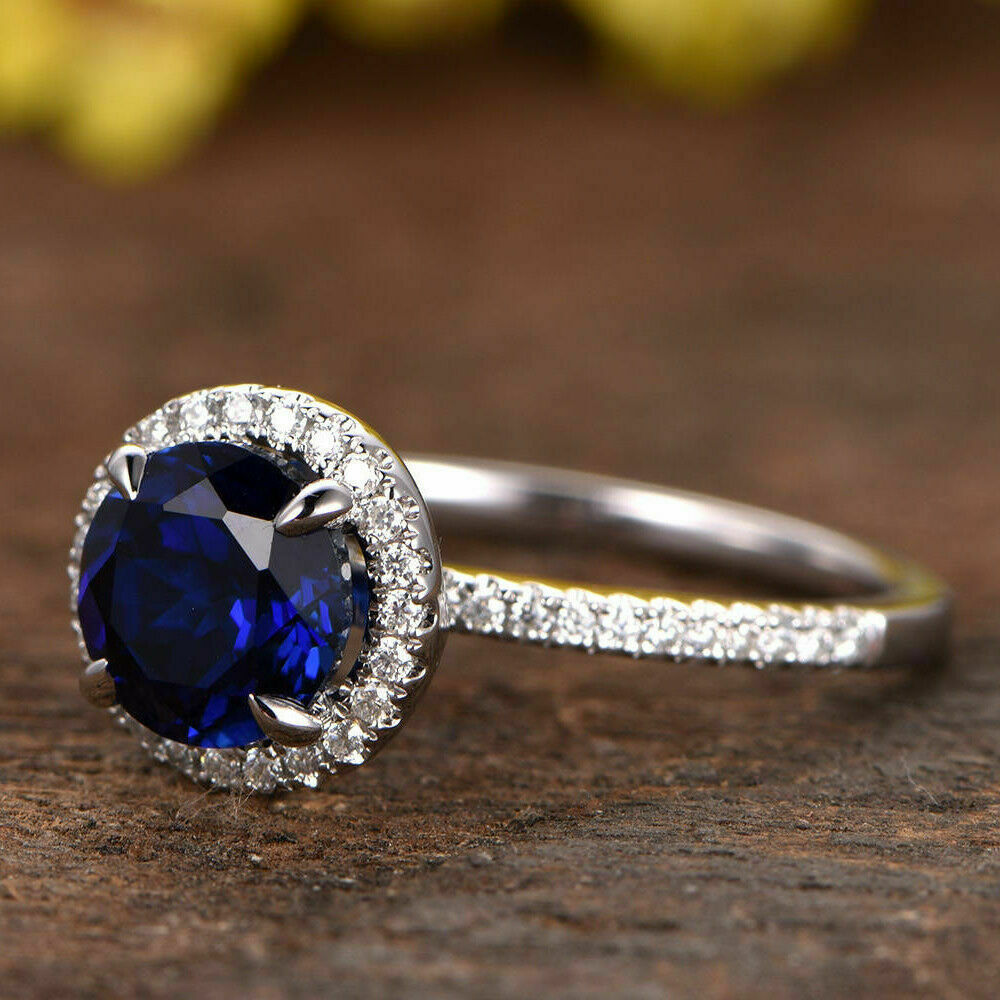 2.30Ct Round Cut Blue Sapphire Halo Engagement Ring 14K White Gold Finish