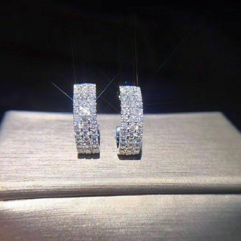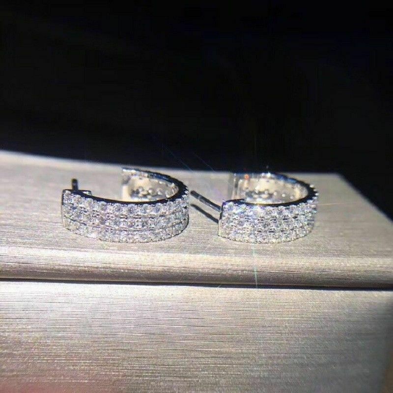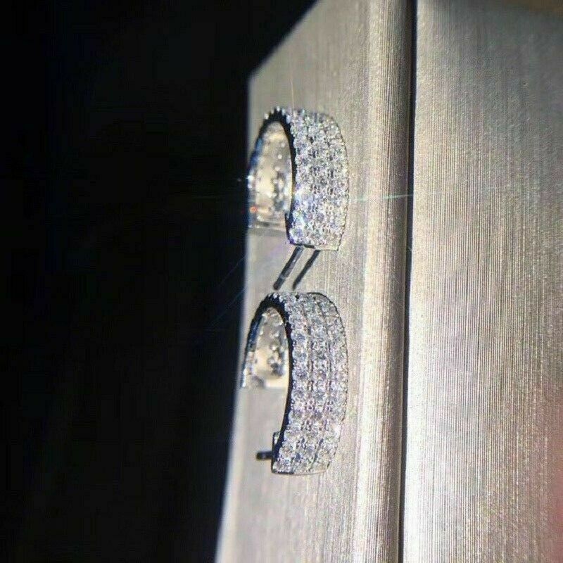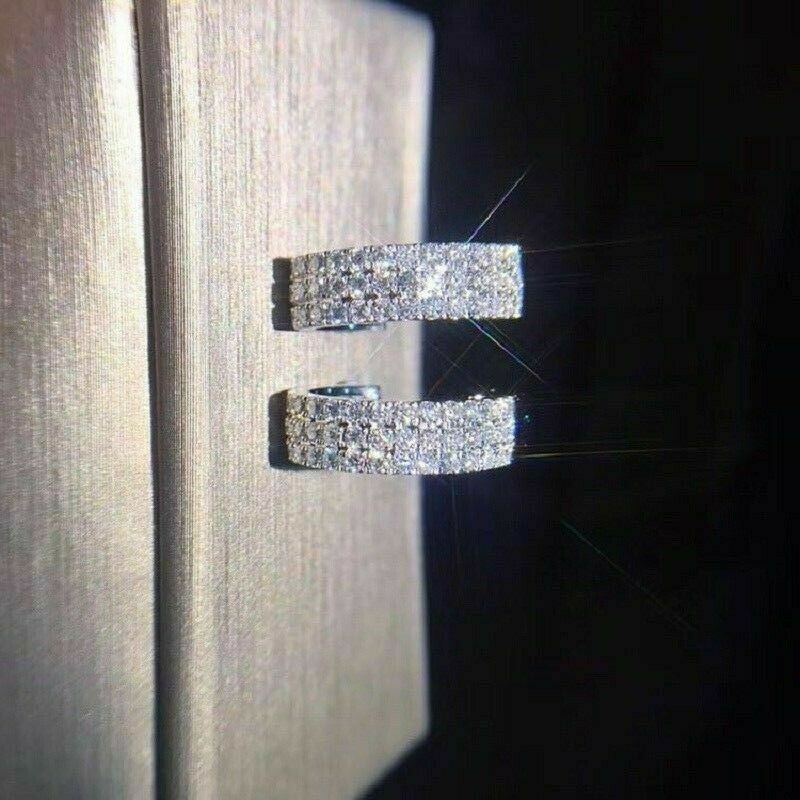 Delicated 1.30Ct Round Cut VVS1/D Diamond Hoop Earrings 14K White Gold Finis