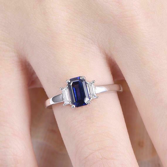 2.20Ct Emerald Cut Blue Sapphire Three-Stone and 50 similar items