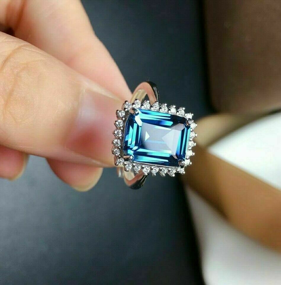 3.20Ct Emerald Cut London Blue Topaz Halo and similar items
