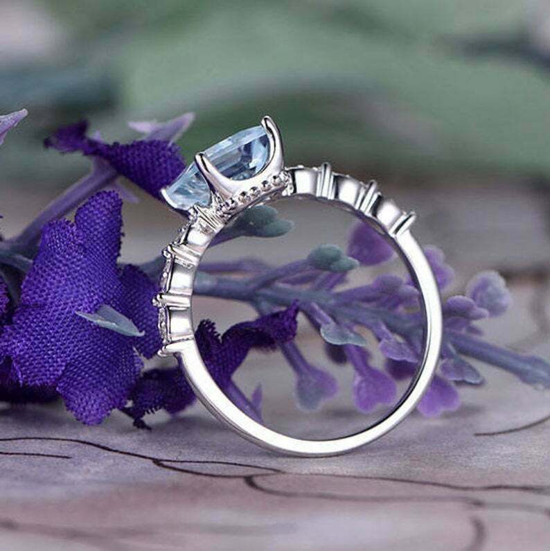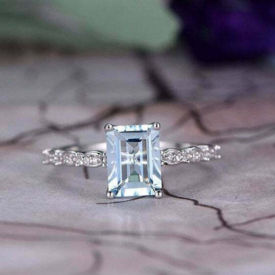 2.20Ct Emerald Cut Aquamarine Solitaire Engagement Ring in 14K White Gold Finish