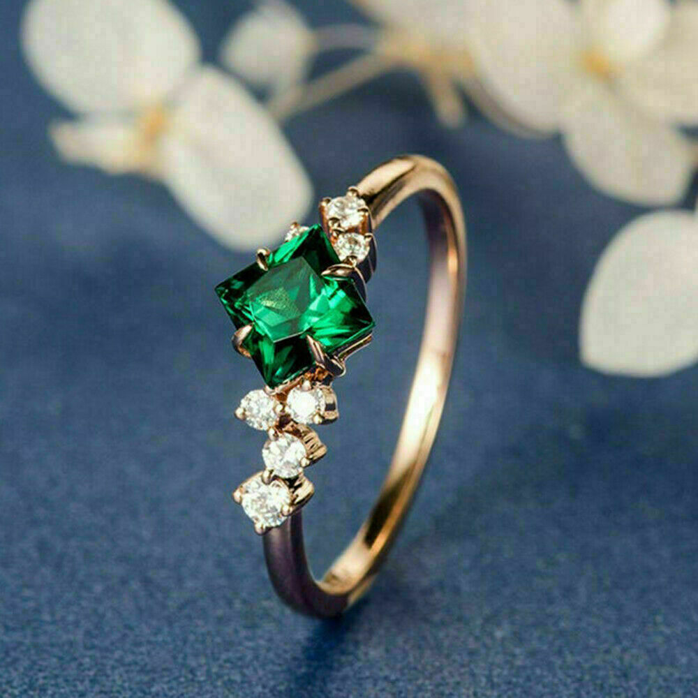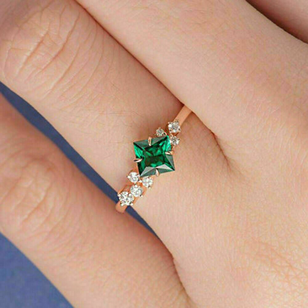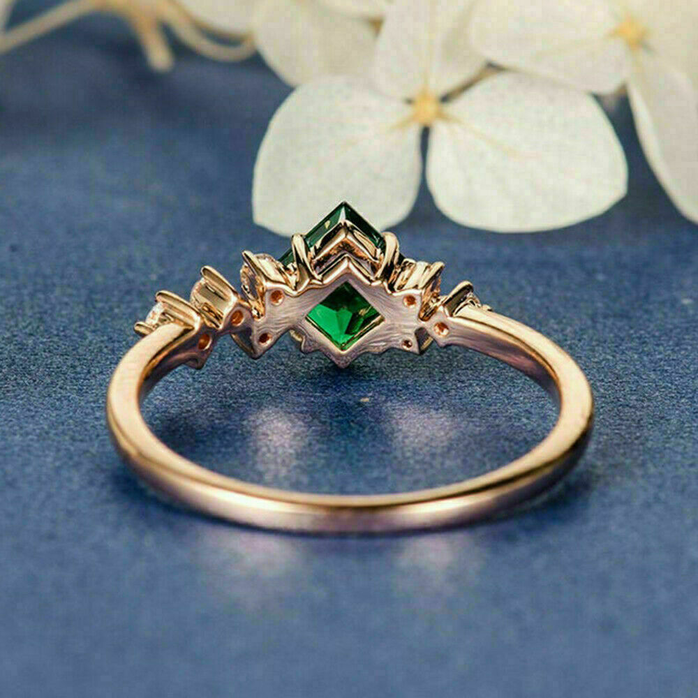 2Ct Princess Cut Green Emerald Solitaire Valentine Ring in 14K Rose Gold Finish