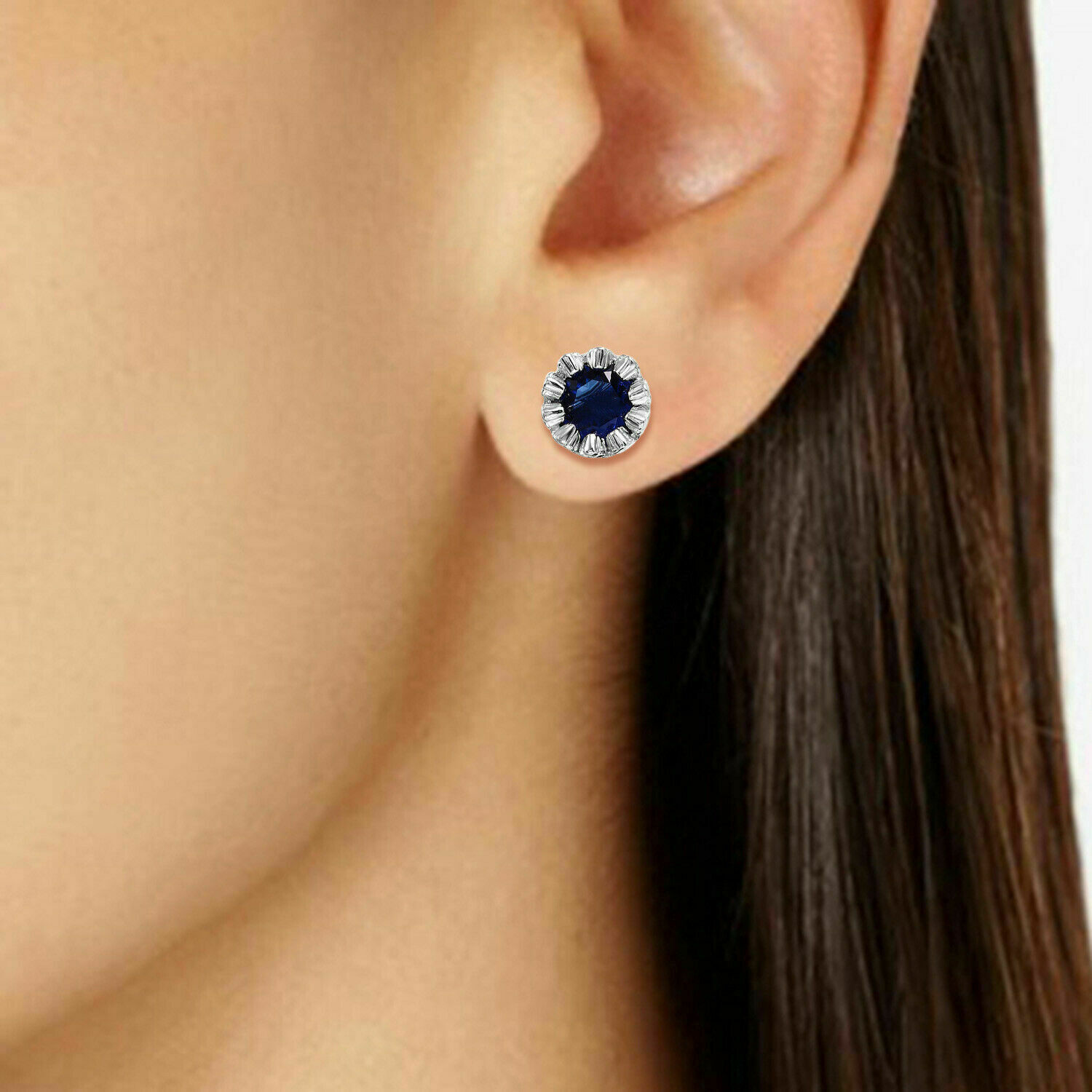 2Ct Round Cut Blue Sapphire Crown Stud and 50 similar items