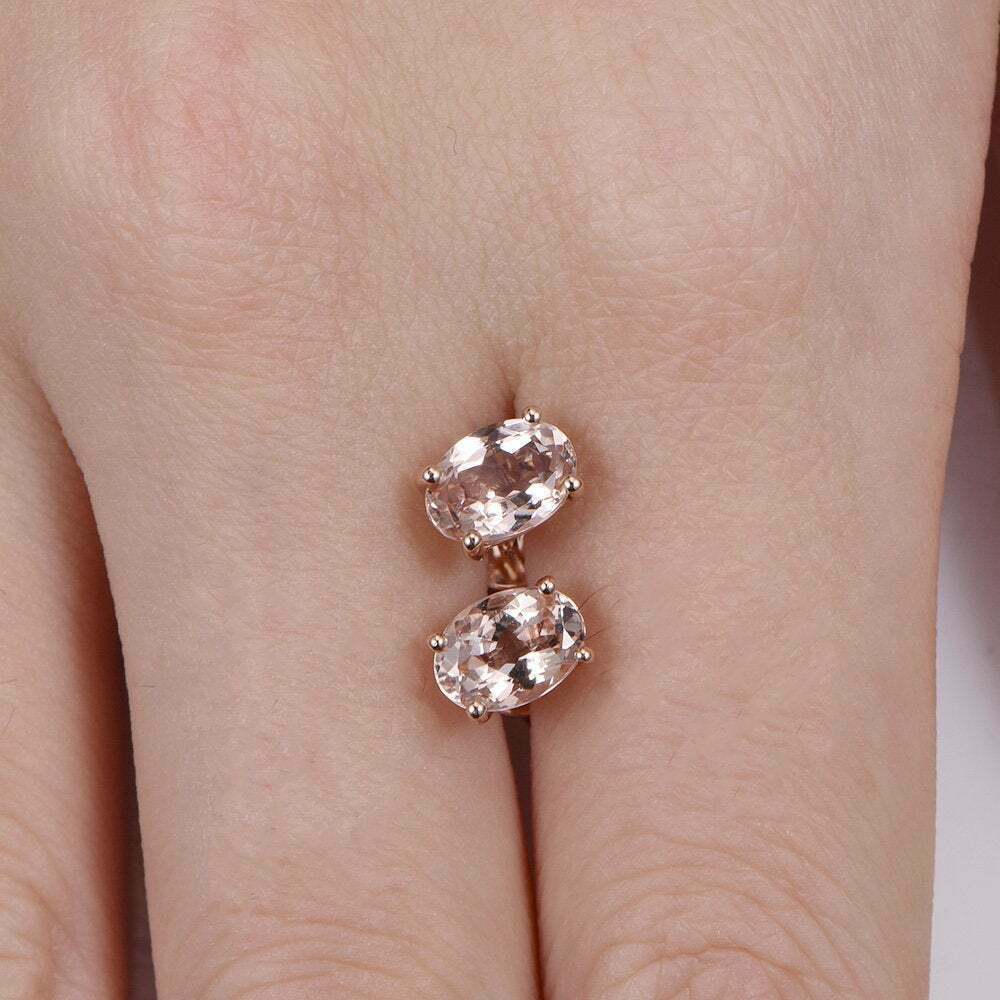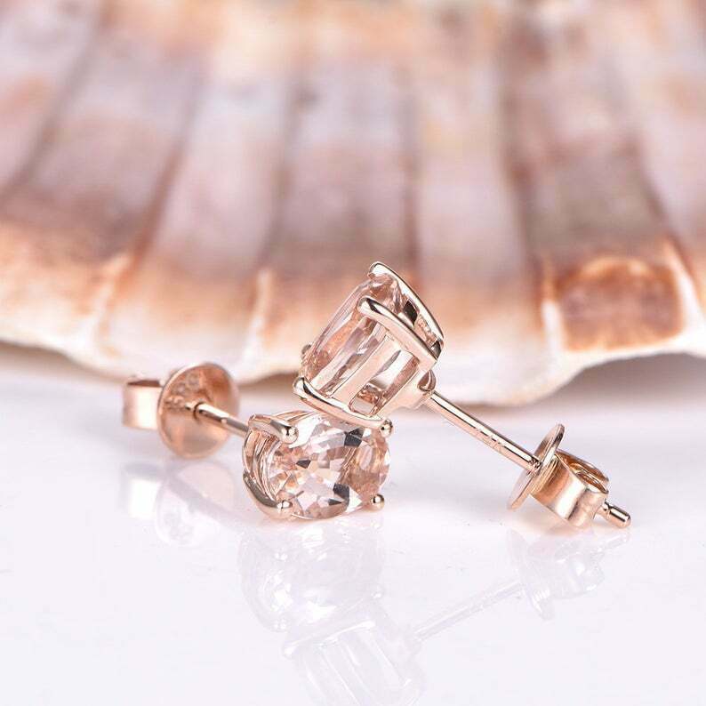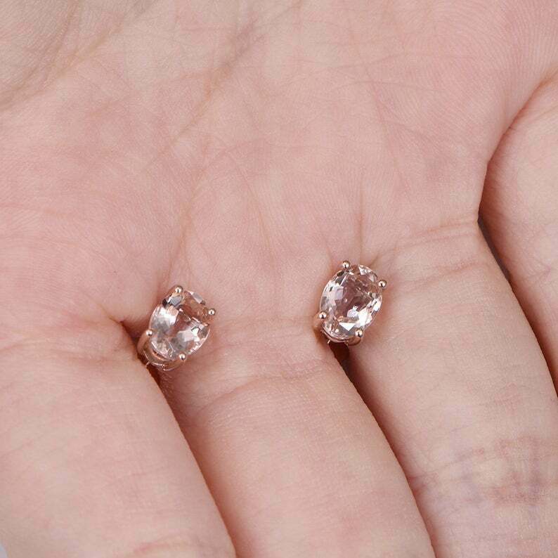 Delicated 4Ct Oval Cut Morganite Solitaire Stud Earrings in 14K Rose Gold Finish