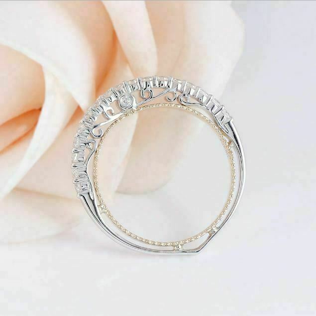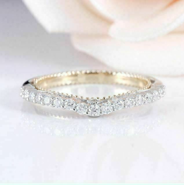 0.30Ct Round Cut VVS1/D Diamond Half Eternity Wedding Band14K Yellow Gold Finish