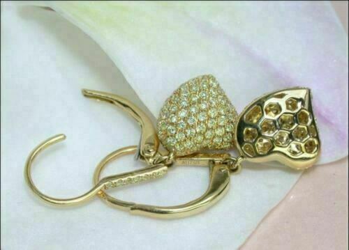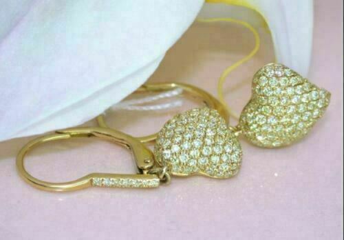 2Ct Round Cut Diamond Heart Shape Drop/Dangle Earrings 14K Yellow Gold Finish