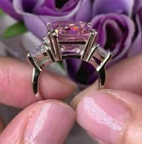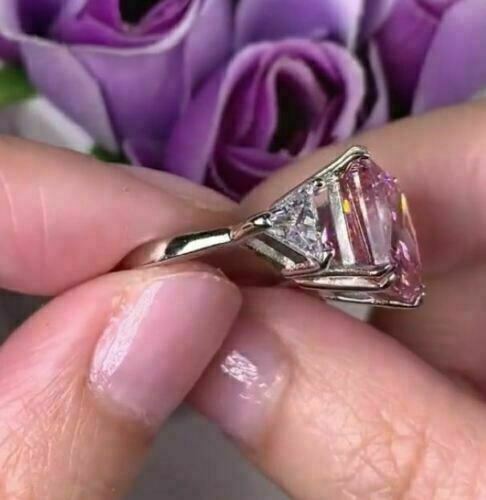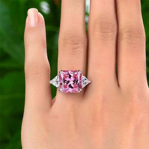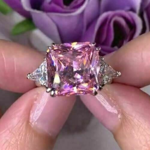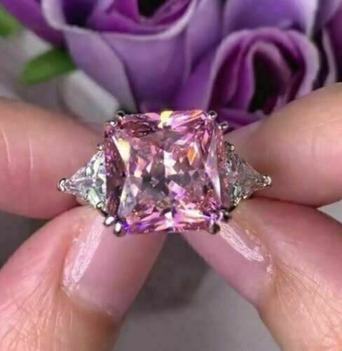 4Ct Princess Cut Pink Diamond Solitaire Engagement Ring 14k White Gold Finish
