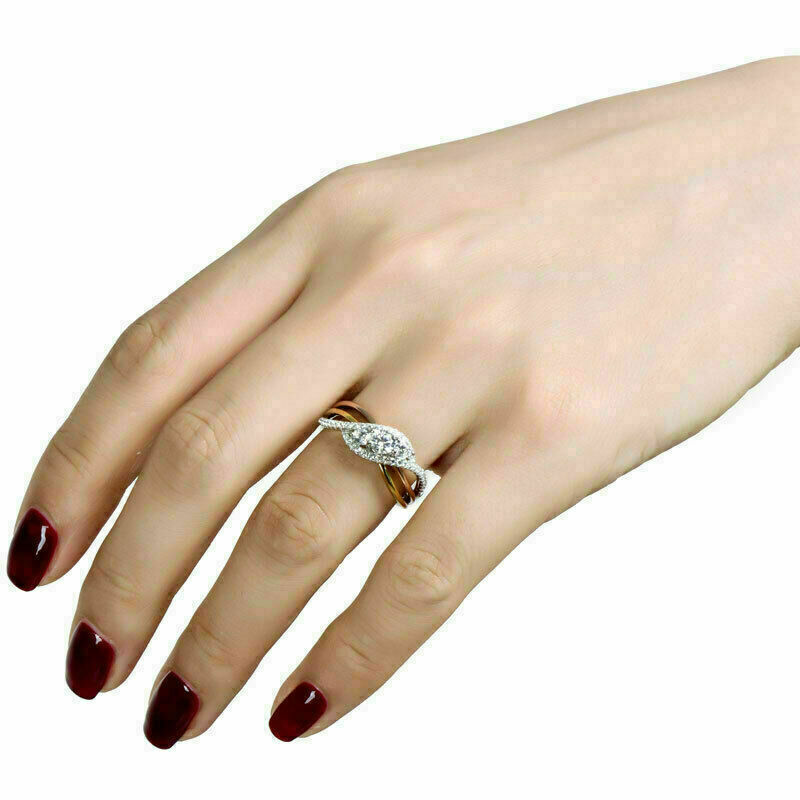 2.50Ct Round Cut Diamond Three Stone Swirl Engagement Ring14K Yellow Gold Finish