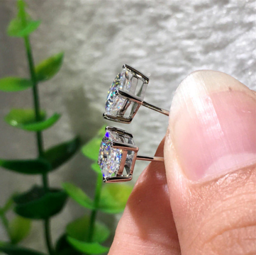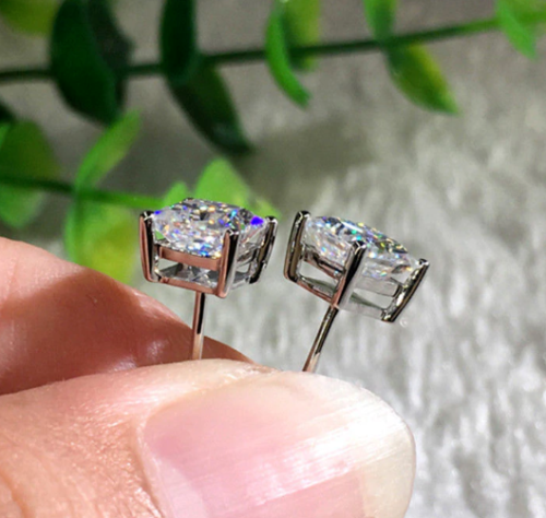 4Ct Princess Cut Diamond Push Back Solitaire Stud Earrings 14K White Gold Finish