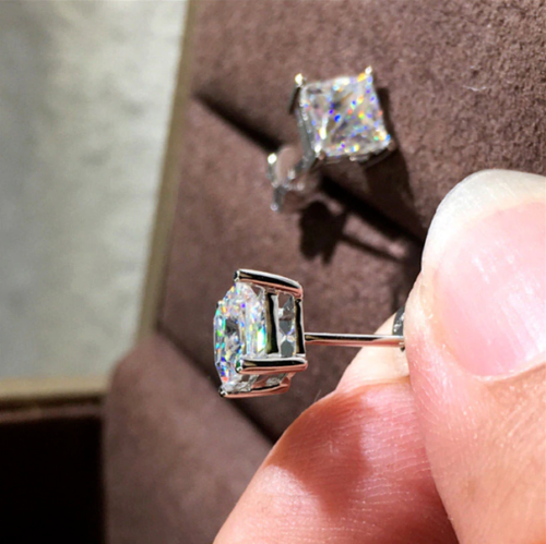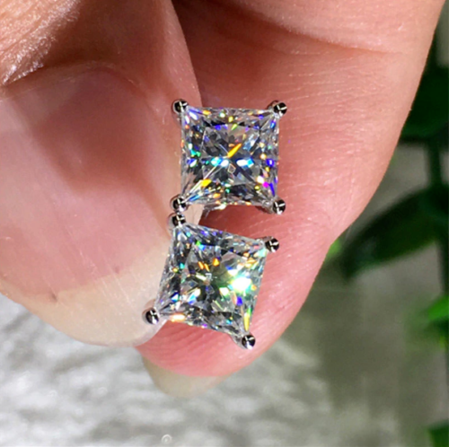 4Ct Princess-Cut D/VVS1 Diamond Solitaire Stud Earrings 14K White Gold Finish