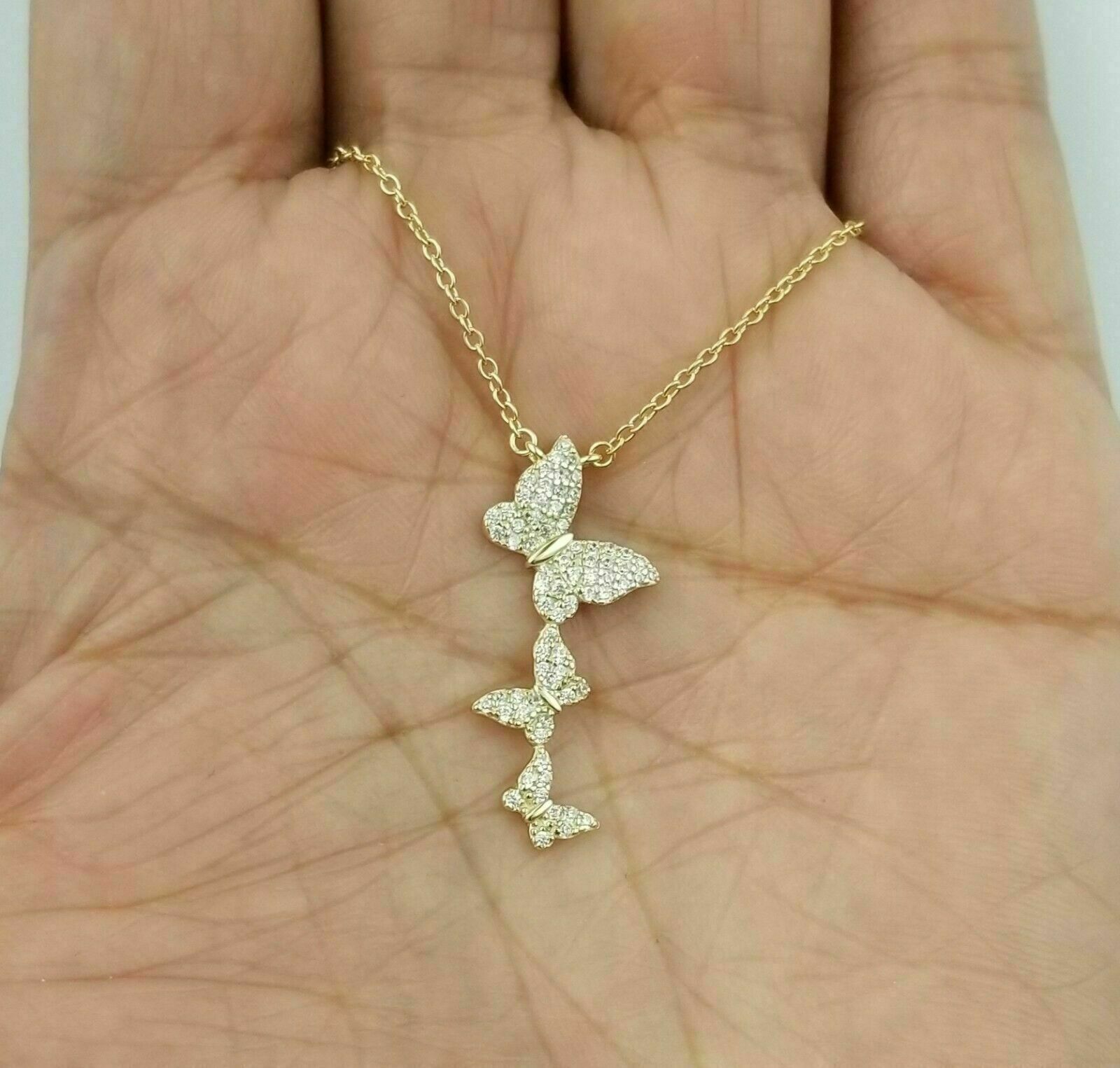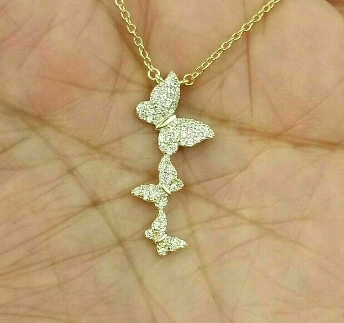 2.30Ct Round Diamond Butterfly Pendant 14k Yellow Gold Finish with Free Chain