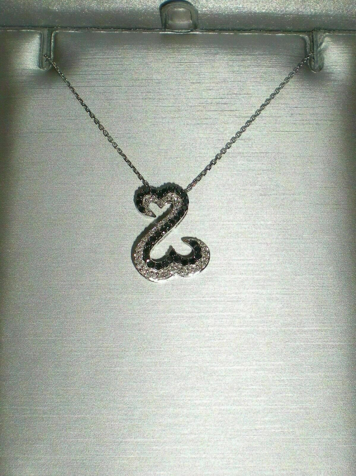 1.50Ct Round Black&White Diamond Open Heart Charm Pendant 14K White Gold Finish